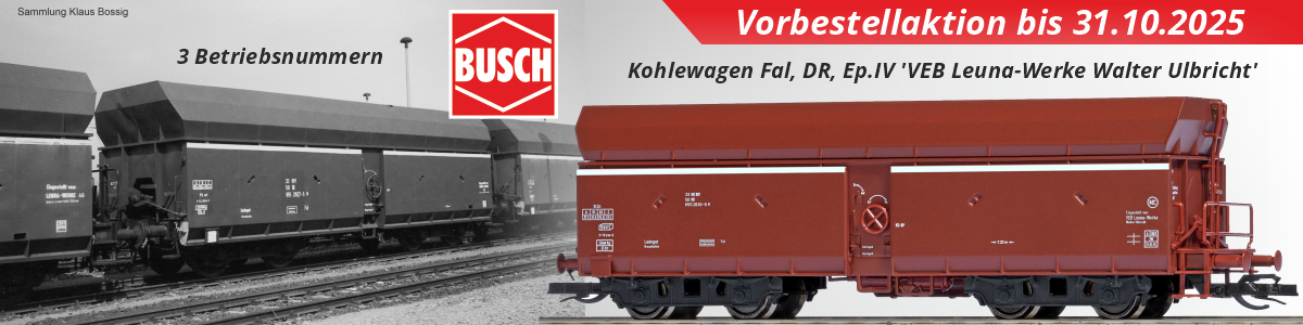 Für dieses Exklusivprojekt sind wir bei Busch fündig geworden: Es handelt sich um den Kohlewagen Fal, der in den 1980er-Jahren beim VEB Leuna-Werke "Walter Ulbricht" eingesetzt wurde.