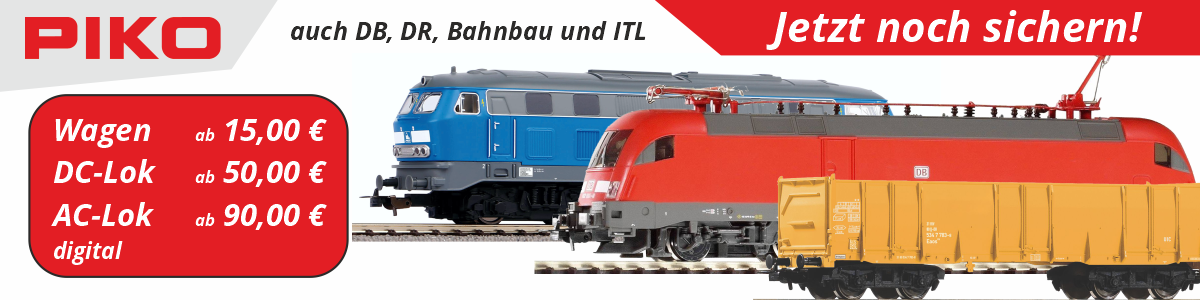 Auch in diesem Jahr bietet PIKO wieder eine attraktive Herbstaktion mit preiswerten Modellen an – denn Modellbahn muss nicht teuer sein! Die Aktionsmodelle stehen kurz vor der Auslieferung und können – bis auf wenige Ausnahmen – noch vorbestellt werden.