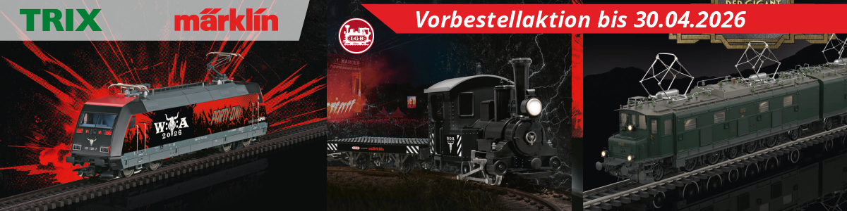 Unser Herz schlägt für Modellbahnen und detaillierte Modellwelten, weshalb wir bestrebt sind, Ihnen jederzeit eine große Auswahl an Produkten und zahlreiche, teilweise exklusive Sondermodelle in limitierten Auflagen im Shop anbieten zu können.