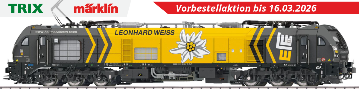 Wir als Modellbahnhändler bieten Ihnen in unserem Modellbahnshop immer die aktuellsten Neuheiten aller Hersteller, von der Modellbahn über Wagen bis zu Fahrzeugen und Gebäuden zum liebevollen Dekorieren der eigenen Modellwelt.