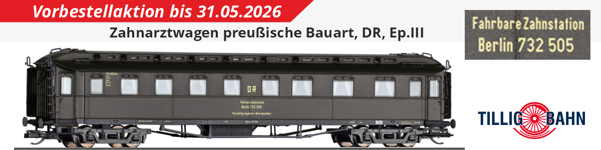 Exklusivmodell 2026: Tillig 502545 - Zahnarztwagen preußische Bauart, Berlin, 732 505, DR, Ep.III