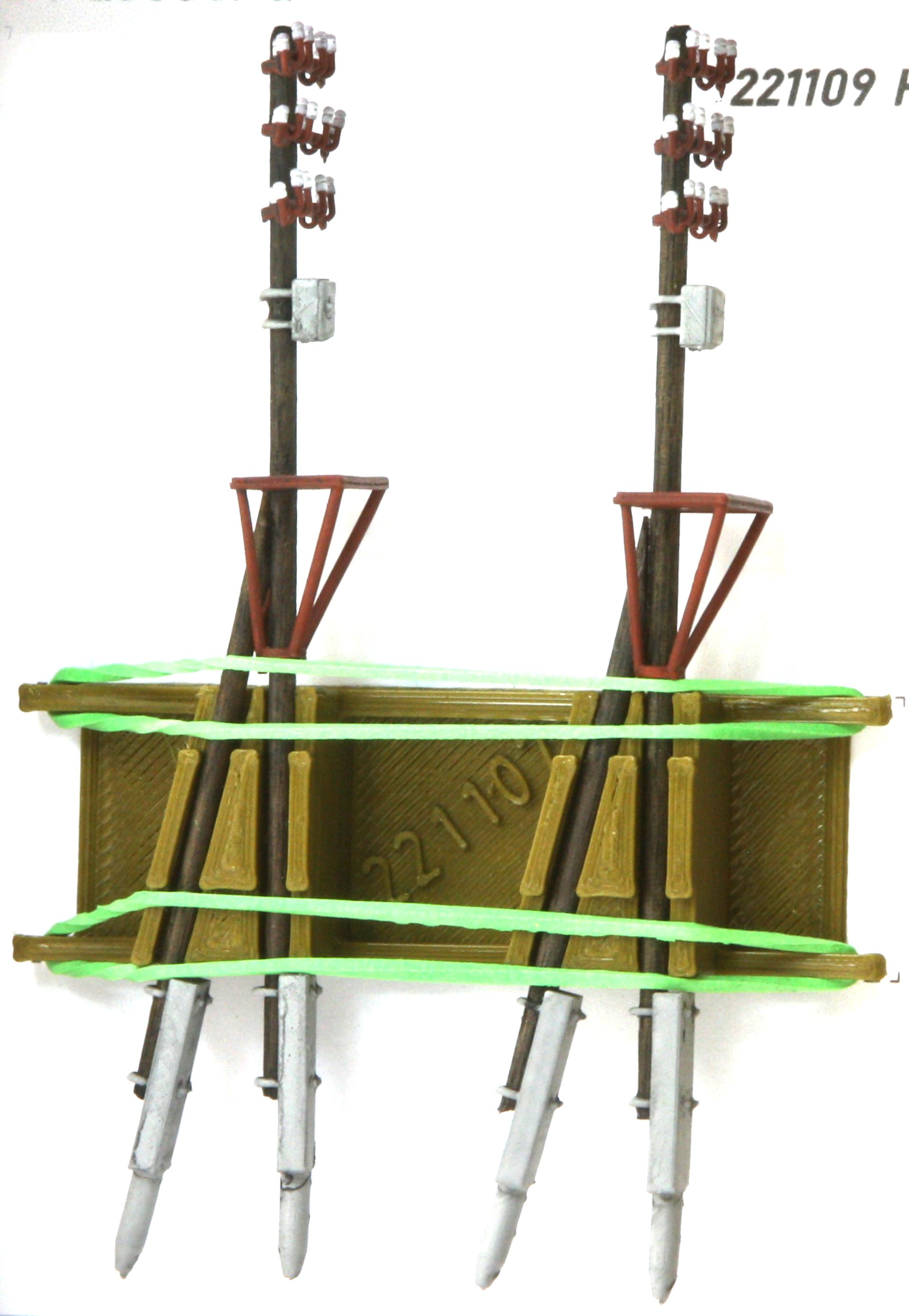 Radestra 221109 - 2 Telegrafenmasten mit 3 Querträgern mit Stütze und Podest