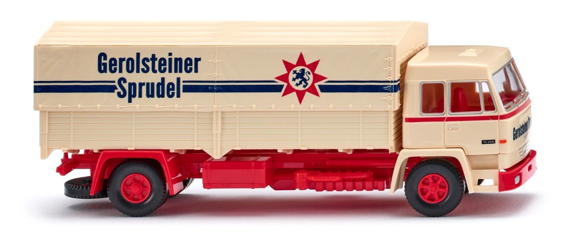 Das Set greift die Modellgeschichte auf und kombiniert drei Kipperaufbauten auf Fahrgestellen unterschiedlicher Hersteller. Das älteste Modell ist ein Magirus 126 D 11 AK Eckhauber als Kurzpritschenkipper (0424), mit kieselgrauem Aufbau sowie rotem Fahrgestell und roten Felgen. Das zweite Modell, ein resedagrüner MAN 26.281 Muldenkipper (0671) mit Stollenrädern, trägt ebenfalls ein rotes Fahrg…