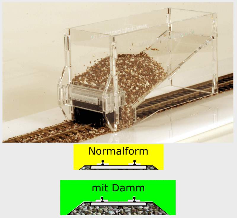 Digitalzentrale 209029 - Schotterhilfe, H0-H0m, Dreischienengleis, 2 Dammvarianten