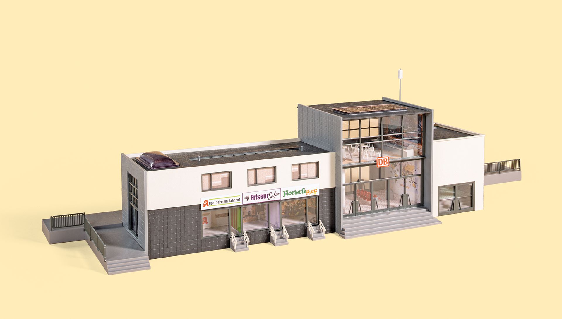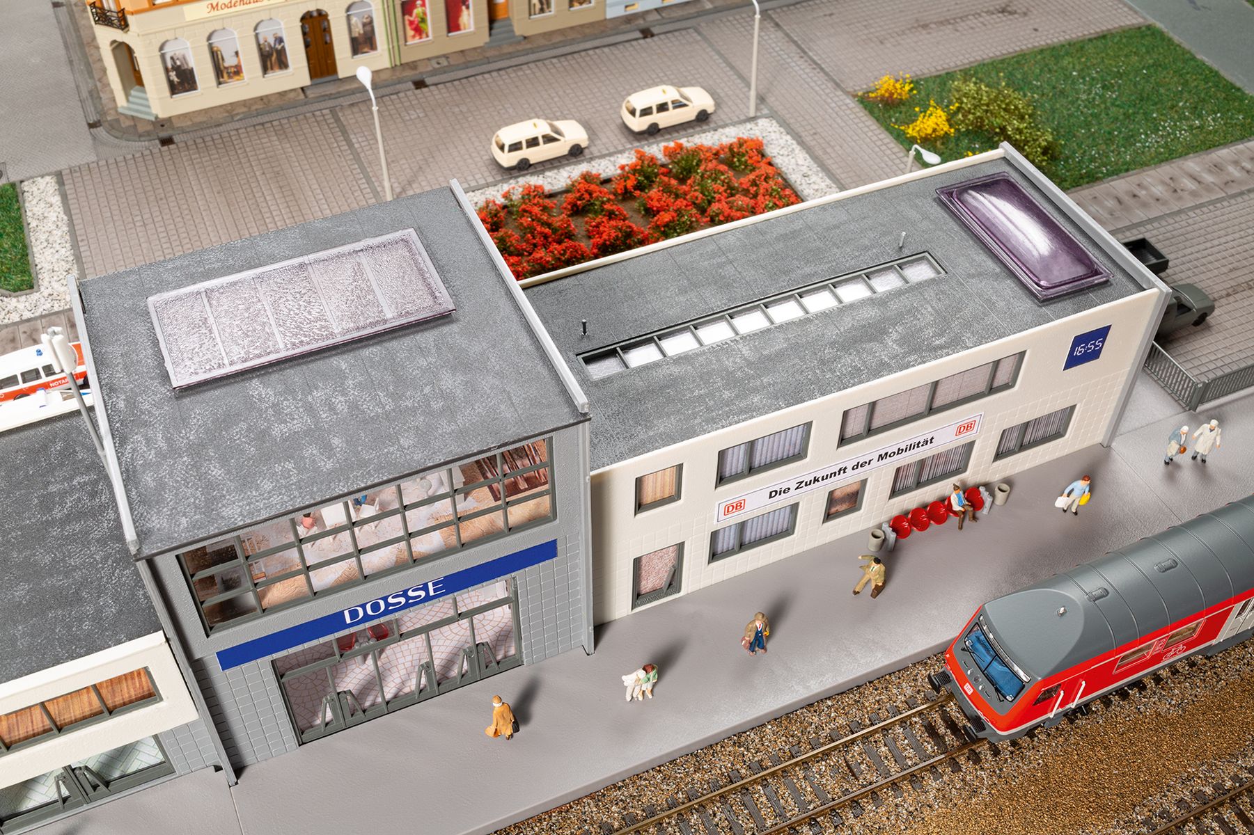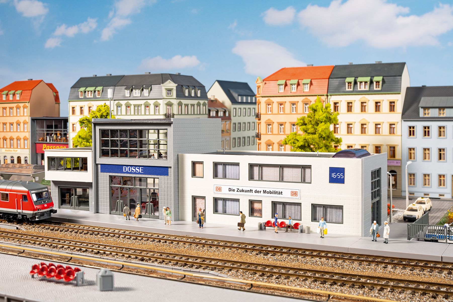 Auf vielfachen Wunsch kehrt dieses beliebte Modell nun in überarbeiteter Form zurück. Die Spritzguss-Werkzeuge wurden modernisiert, so dass sich eine noch detailreichere und passgenauere Umsetzung ergibt.?Der Bahnhof Dosse überzeugt durch seine vielfältige Ausstattung. Im Obergeschoss befindet sich eine Bistroeinrichtung, die durch zahlreiche Details ergänzt wird. Die großzügige Empfangshalle mit typischer Verglasung bildet das Herzstück des Gebäudes.?Ein weiterer Blickfang ist die angebaute Stellwerksnachbildung, die funktional wie optisch überzeugt. Passend dazu empfehlen wir das separat erhältliche Stellwerk Dosse Art. 13358, das die Szenerie sinnvoll ergänzt.Ein ideales Modell zur Gestaltung moderner Bahnhöfe mit Vorbildnähe und Atmosphäre.