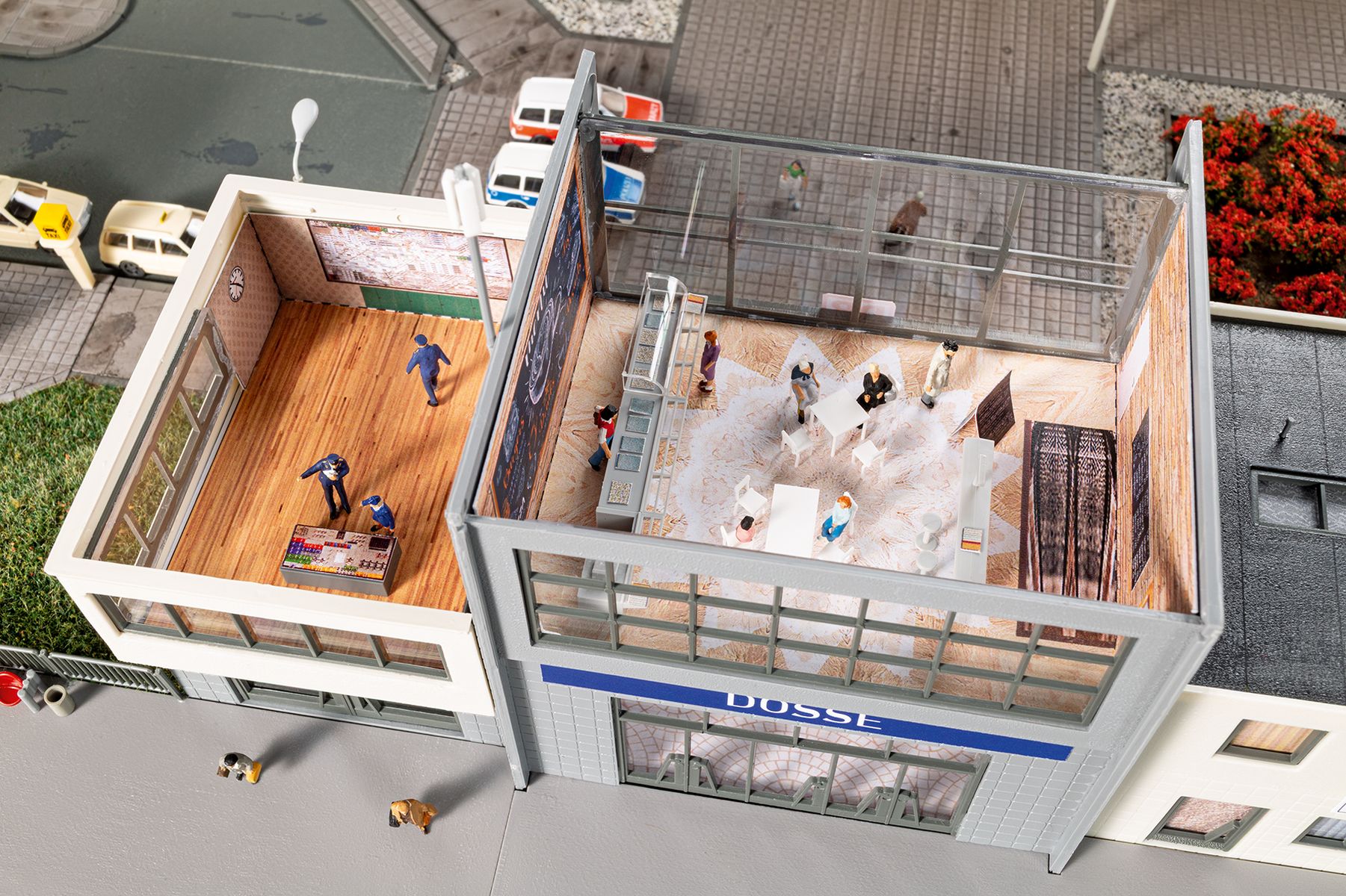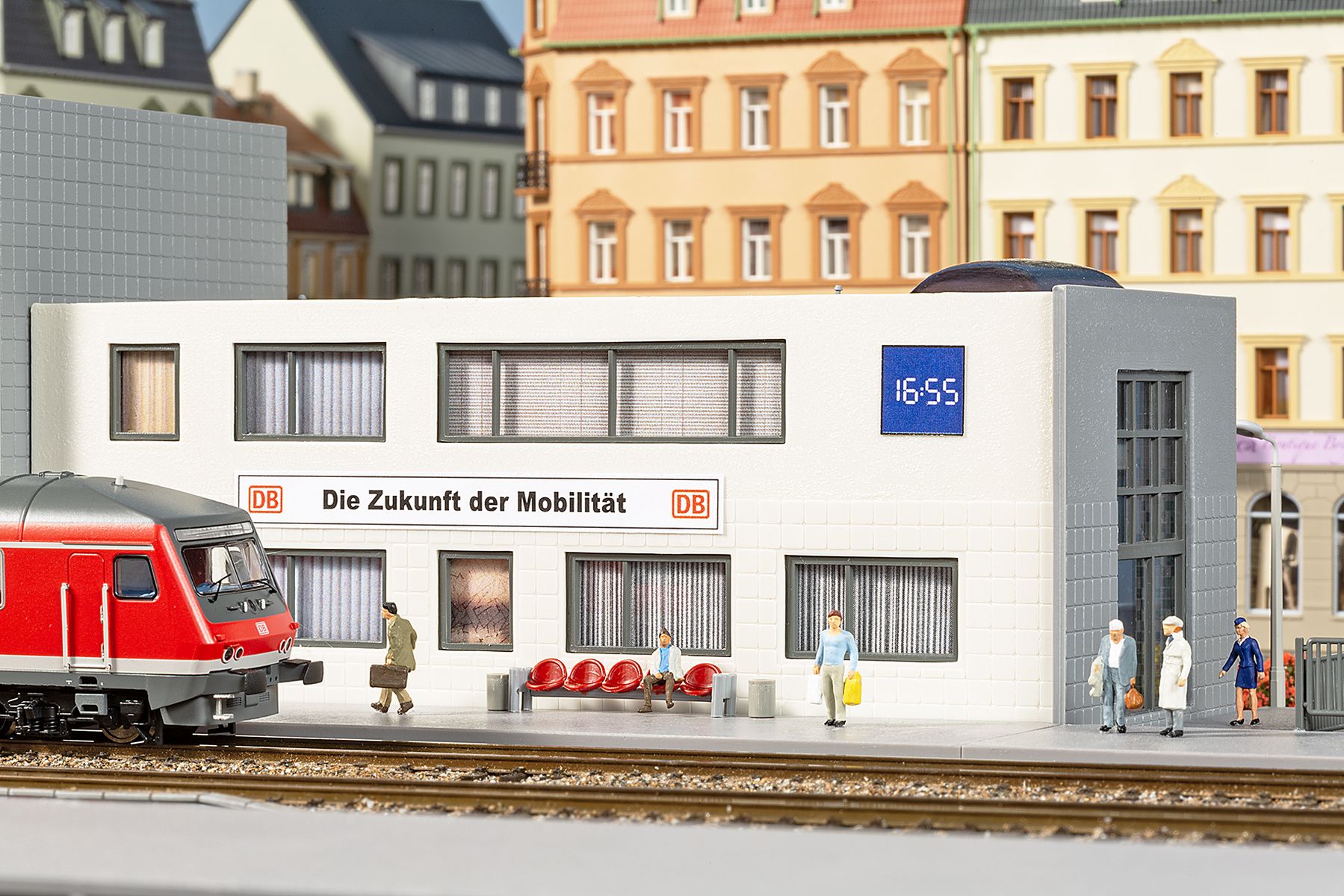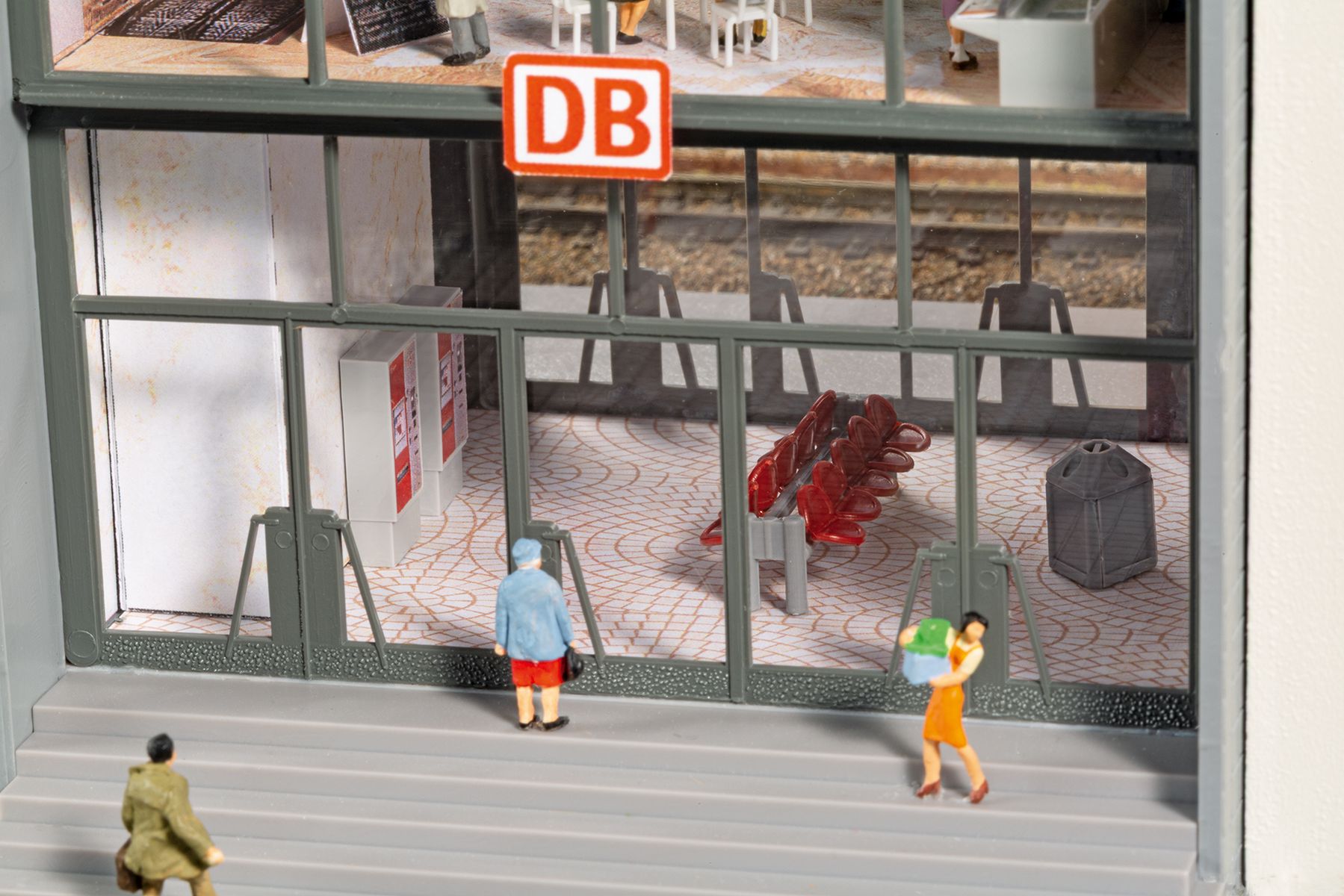 Auf vielfachen Wunsch kehrt dieses beliebte Modell nun in überarbeiteter Form zurück. Die Spritzguss-Werkzeuge wurden modernisiert, so dass sich eine noch detailreichere und passgenauere Umsetzung ergibt.?Der Bahnhof Dosse überzeugt durch seine vielfältige Ausstattung. Im Obergeschoss befindet sich eine Bistroeinrichtung, die durch zahlreiche Details ergänzt wird. Die großzügige Empfangshalle mit typischer Verglasung bildet das Herzstück des Gebäudes.?Ein weiterer Blickfang ist die angebaute Stellwerksnachbildung, die funktional wie optisch überzeugt. Passend dazu empfehlen wir das separat erhältliche Stellwerk Dosse Art. 13358, das die Szenerie sinnvoll ergänzt.Ein ideales Modell zur Gestaltung moderner Bahnhöfe mit Vorbildnähe und Atmosphäre.