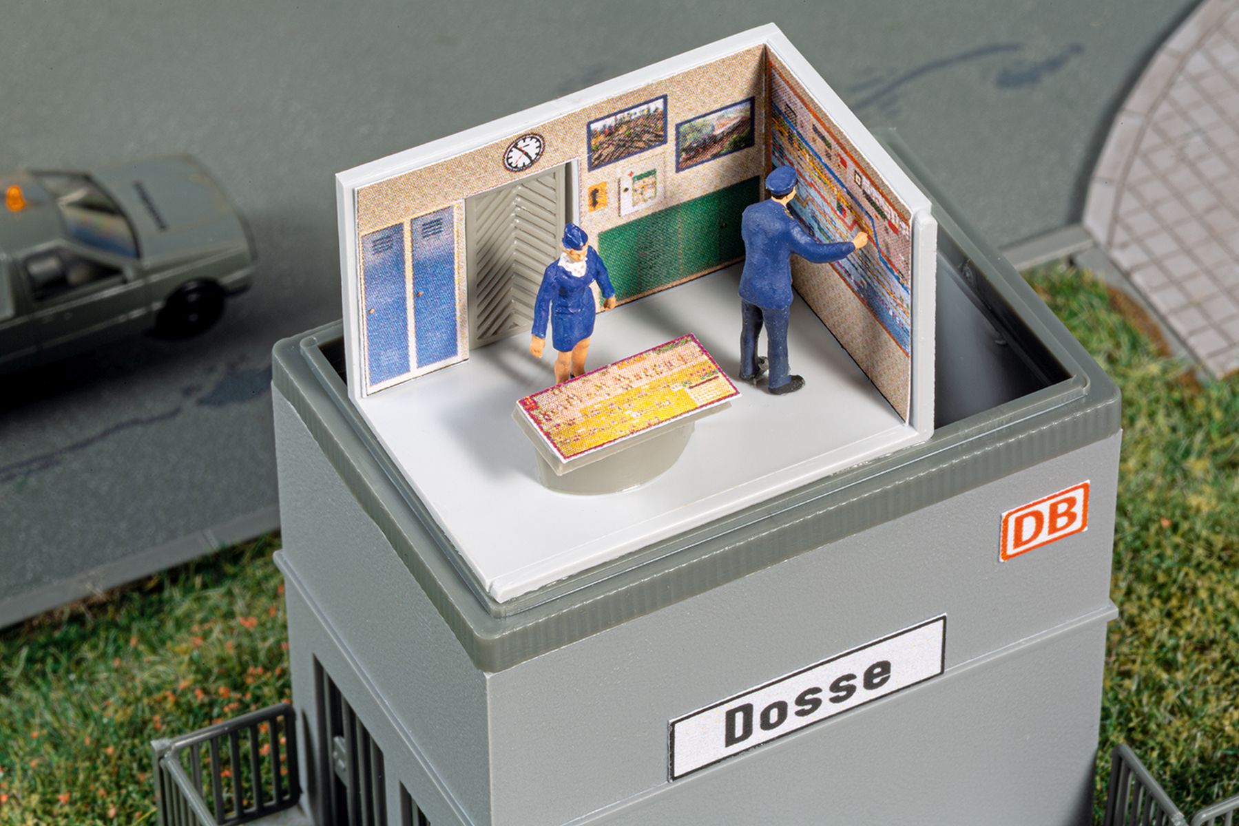 Passend zum Bahnhof Dosse Art. 13357 ergänzt dieses moderne Stellwerk das Ensemble zeitgemäßer Bahngebäude.Das kompakte Gebäude besitzt eine Inneneinrichtung, die durch große Fenster gut sichtbar ist. Damit eignet sich das Modell ideal zur Ausgestaltung von Bahnhöfen und Streckenabschnitten mit aktuellem Charakter.