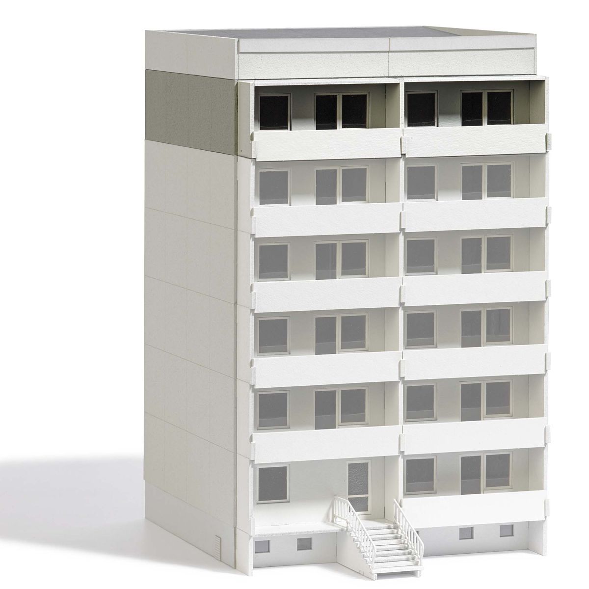 Die im Volksmund so genannte »Platte« steht für die Bauweise von Wohnhäusern aus standardisierten Wohnungsbauplatten. Diese wurden in Wohnungsbaukombinaten der DDR aus Beton hergestellt. Die Wohnungsbauserie aus dem Jahr 1970 (WBS 70) erlaubte die rationale und variable Erstellung von Wohnraum. Viele der so entstandenen Gebäudeensembles werden auch heute noch genutzt, manche stehen sogar unter Denkmalschutz. Die Plattenbauserie von Busch besteht aus dem Gebäude mit der gängigen Geschosshöhe, das durch eine separate Etage individuell aufgestockt werden kann. Highlight sind die passenden Einrichtungssets mit Figuren und Szenen aus dem richtigen Leben. Bausatz zur Erhöhung des Plattenbau-Gebäudes H0 1926 um eine weitere Etage. Mit mehreren der Aufstockungen kann das Gebäude um weitere Stockwerke erhöht werden.