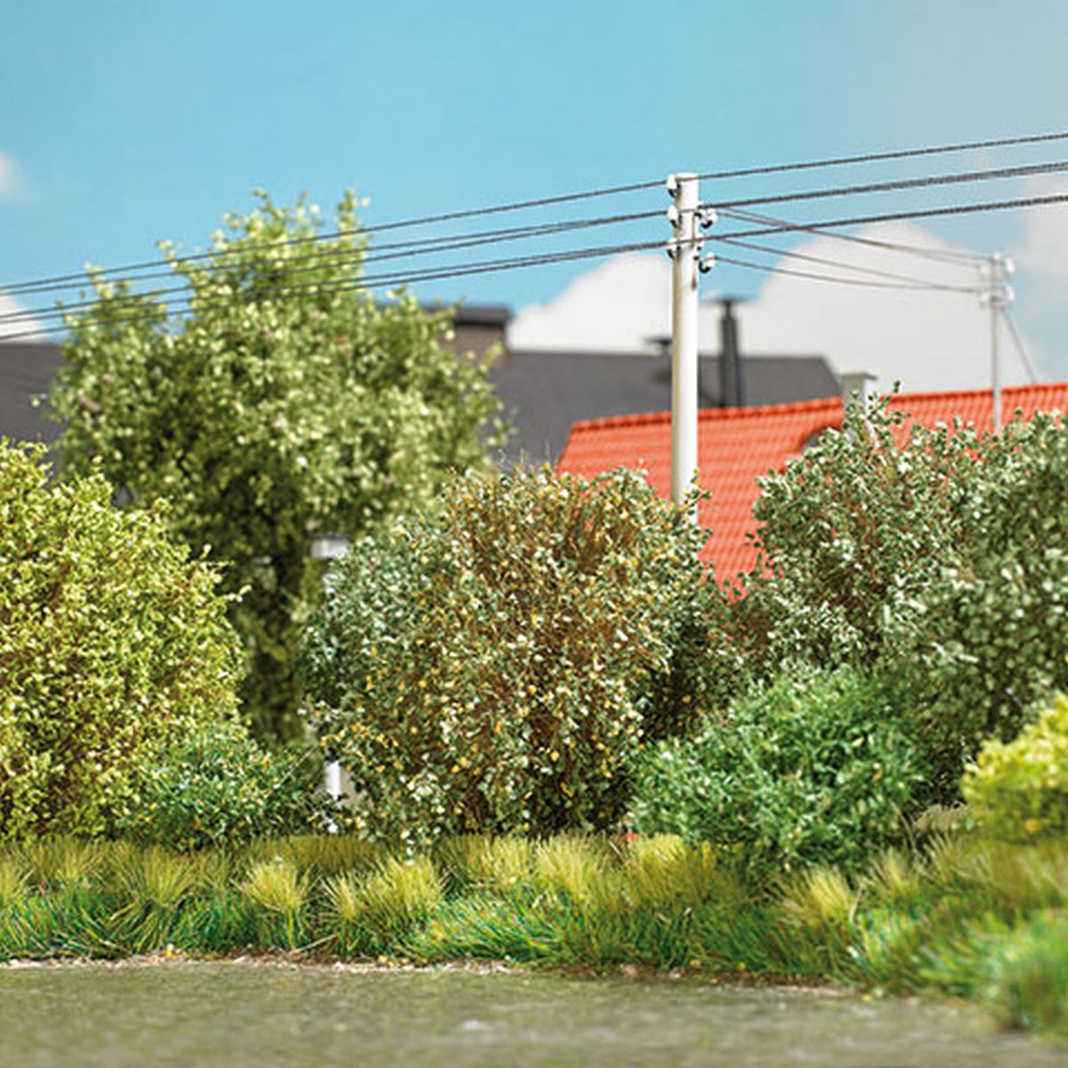 Drei filigrane EXKLUSIV-Büsche aus der NATUR PUR-Serie in einem Set. Sie sind jeweils 40 mm hoch und werden einfach in den Boden gesteckt. Erhältlich in den Laubfarben Frühling, Sommer, Spätsommer und Herbst. Passend zu dieser Serie gibt es auch Sträucher und Bäume in gleicher Struktur und Farbe
