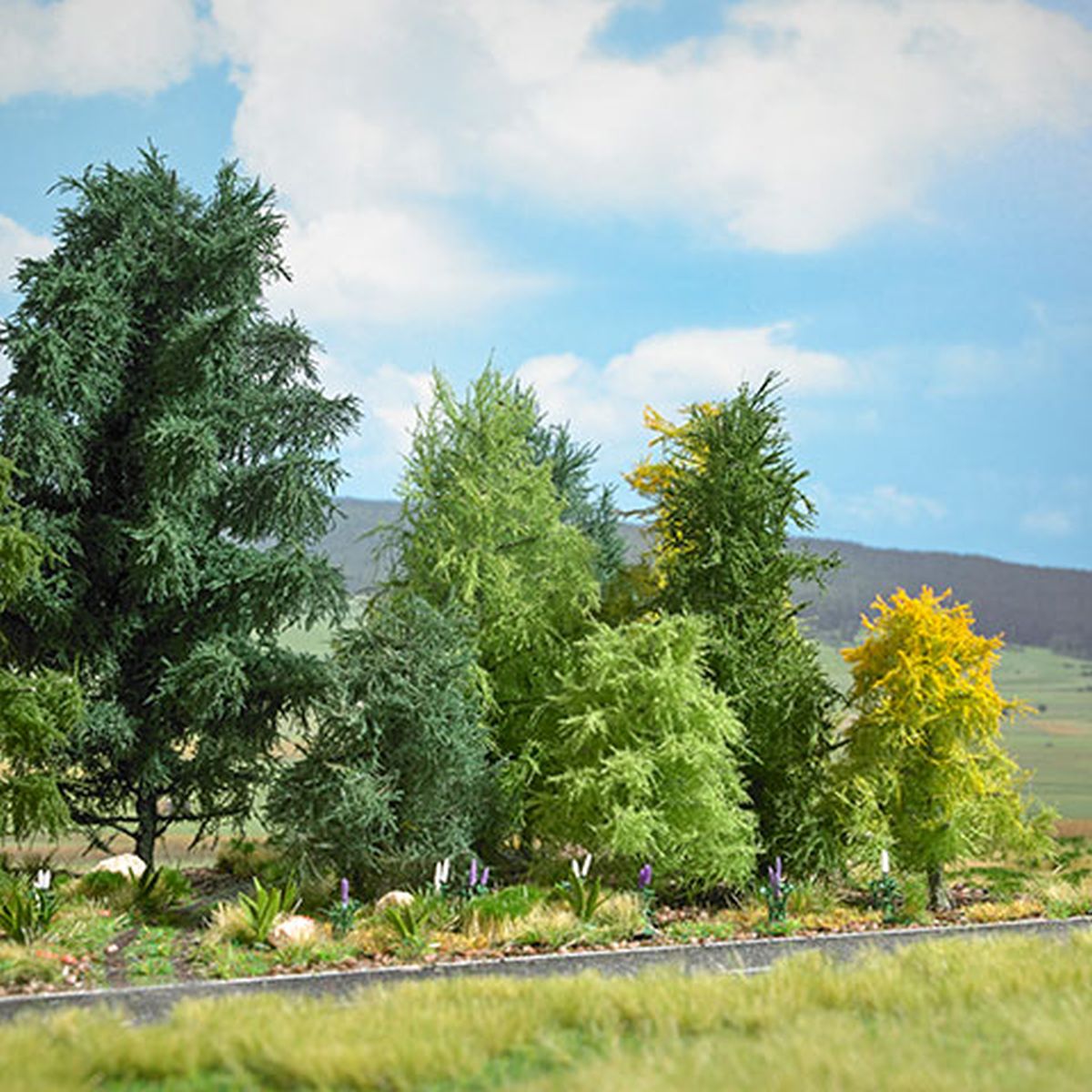 Ein super schöner Wald entsteht z.B. durch die Einzelplatzierung von NATUR PUR Exklusiv Nadelbäumen am Waldrand, kombiniert mit den preiswerten Busch Nadelbäumen für die dichte Bewaldung dahinter.
