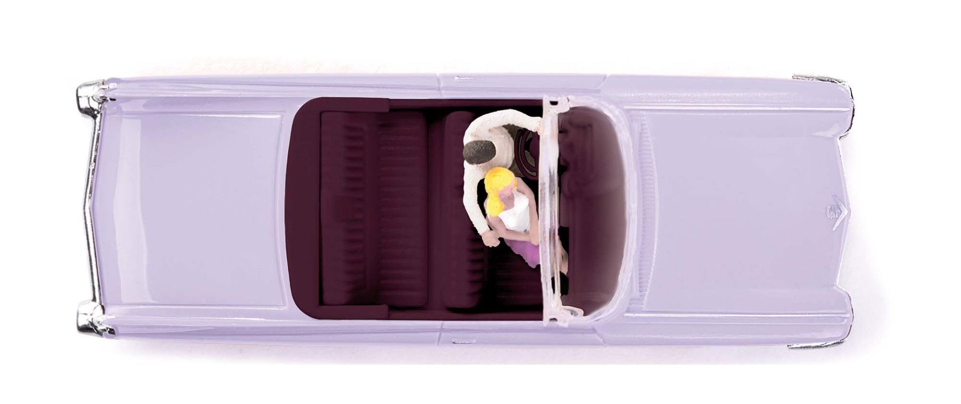 Toujour l'amour. Das frisch verliebte Paar fährt mit seinen eleganten Caddy durch die sommerliche Landschaft. Das hübsche Cabrio mit Weißwandreifen ist nicht nur in Spielfilmen ein beliebtes Fahrzeug, das auch von Elvis Presley favorisiert wurde. Es ist DAS amerikanische Luxusauto der 50er Jahre und auch ein absoluter Klassiker im Cadillac-Programm. Der 5,27 Meter lange Eldorado mit seiner charakteristischen Heckflosse und dem vielen chromglänzenden Zierrat war mit einem Anschaffungspreis von über 13.000 Dollar allerdings auch mit Abstand das teuerste amerikanische Auto seiner Zeit.
