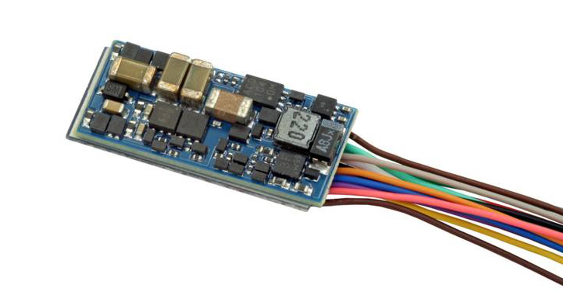 Mit dem LokSound 5 Nano DCC ist es ESU gelungen, einen nochmals deutlich kleineren LokSound Decoder zu entwickeln: Mit nur 19.6 mm x 8.5 mm x 3.2 mm ist er der kleinste LokSound Decoder, den wir je gebaut haben. Somit sollte er wirklich in allen Fahrzeugen der Nenngrößen N und TT seinen Einsatz finden. Der LokSound 5 Nano DCC Decoder ist ein reiner DCC-Decoder mit offenen Kabelenden zur freien Verdrahtung und wird mit einem 11 x 15 mm großen „Zuckerwürfel“-Lautsprecher nebst Schallkapsel-Bausatz geliefert.