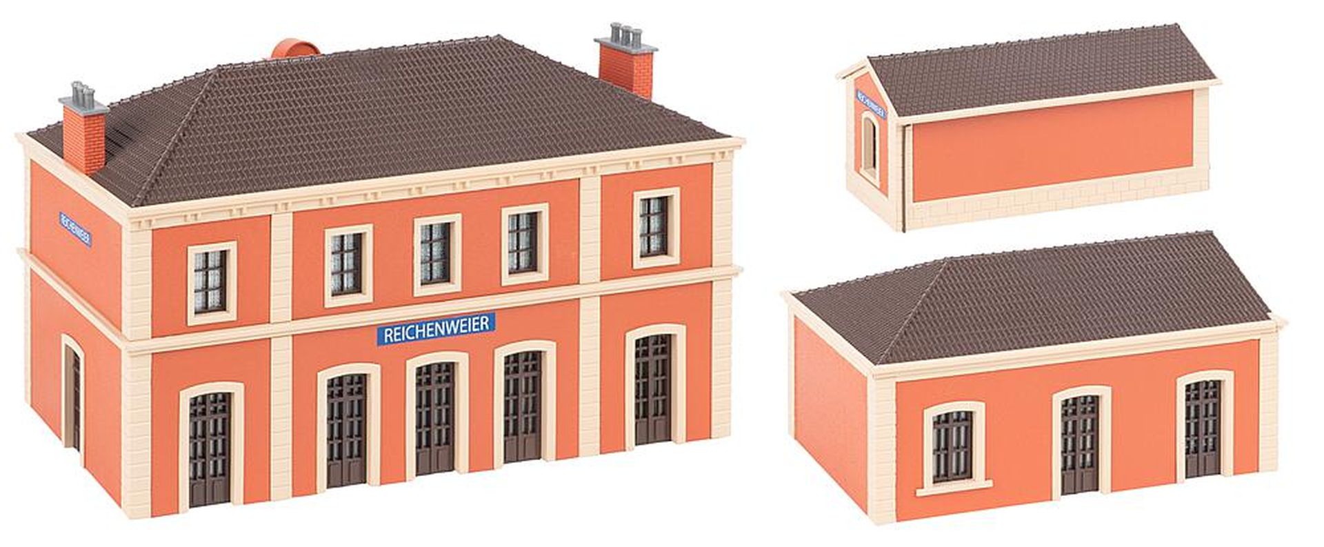 Bahnhof: 209 x 108 x 118 mm • Nebengebäude: 150 x 93 x 72 mm • Wartehaus: 119 x 52 x 51 mm