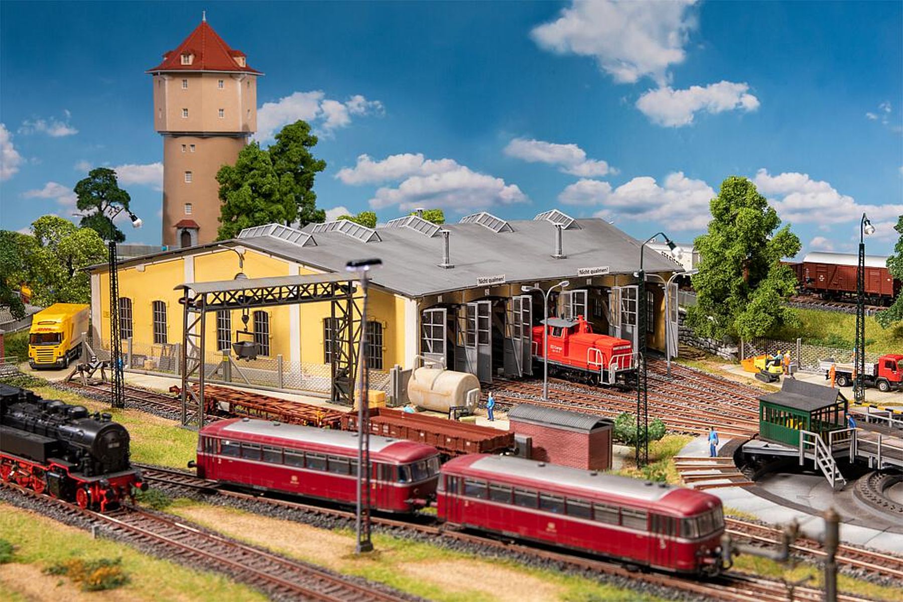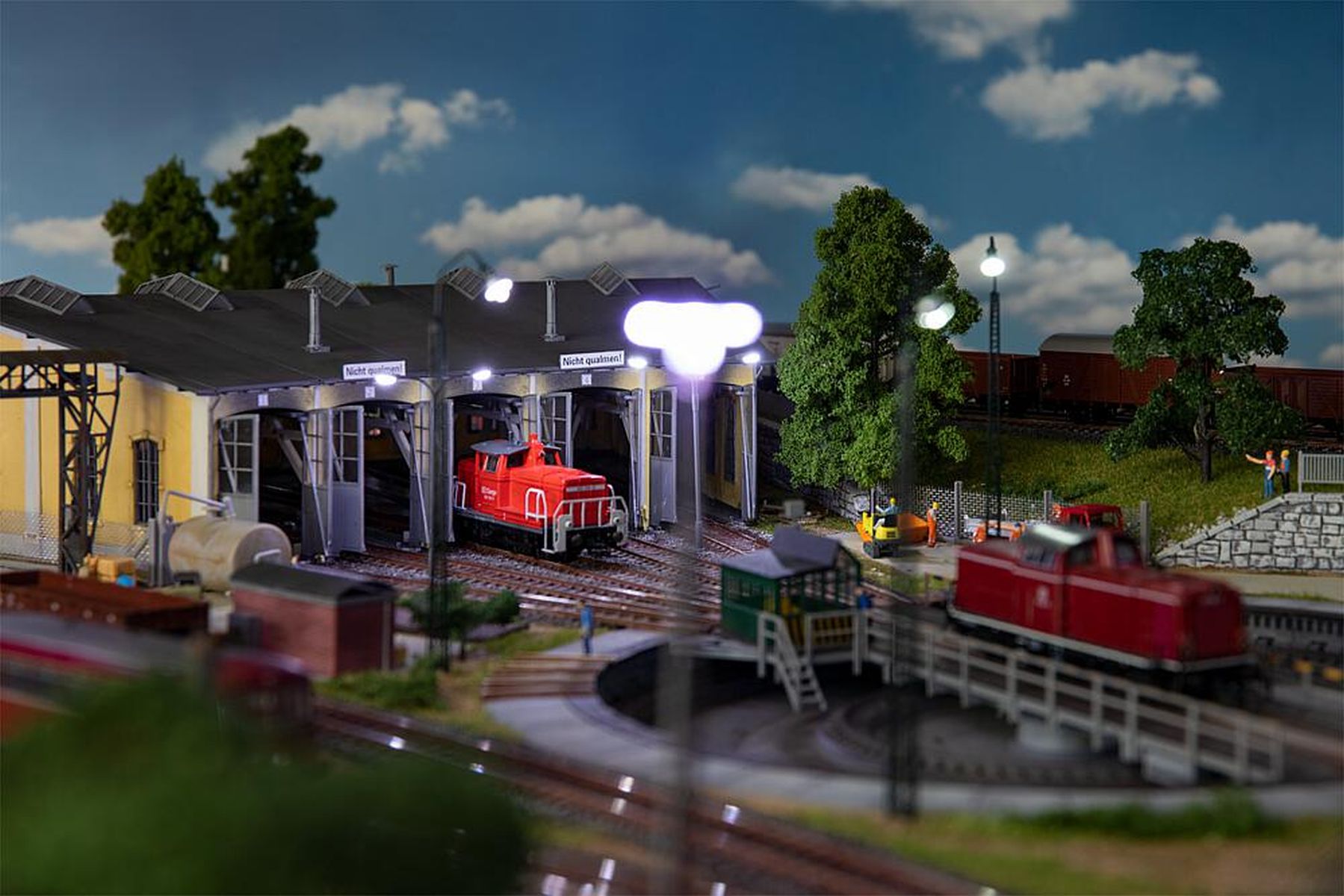 Passend zu den weiteren Modellen der Freilassing-Serie: Wagenhalle »Freilassing«, Art. 120082, Stellwerk »Freilassing«, Art. 120084 und Bw-Verwaltung »Freilassing«, Art. 120083.