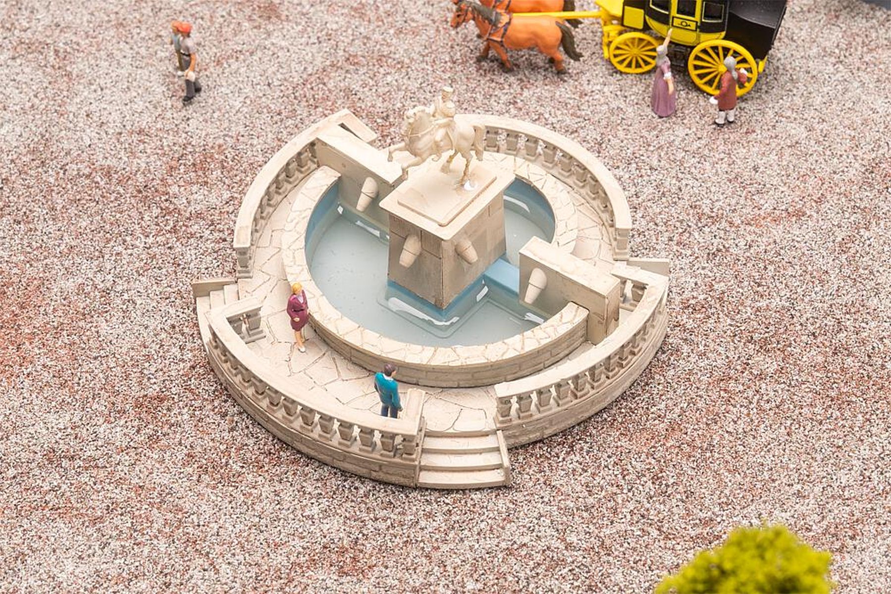 Bezaubernder Schlossbrunnen im historischen Stil, gekrönt von einem Reiter auf steigendem Ross, der an vergangene Zeiten erinnert. Er setzt liebevolle Akzente und verschönert jeden Schlossgarten oder Park auf elegante Weise. Der Brunnen lässt sich problemlos mit der Wasserpumpe (Art. 180627 - liegt nicht bei) betreiben und wird so zum lebendigen Mittelpunkt der Gartenanlage.