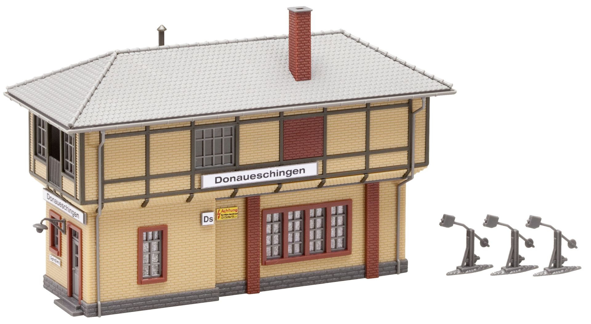 Das kleine Stellwerk mit hellbraunen Ziegelsteinen und etwas Fachwerk im Obergeschoss bereichert die Modellbahnanlage und verleiht der Szenerie nochmal einen Hauch mehr Authentizität. Dem Miniaturbahnbetrieb steht so nichts mehr im Weg!