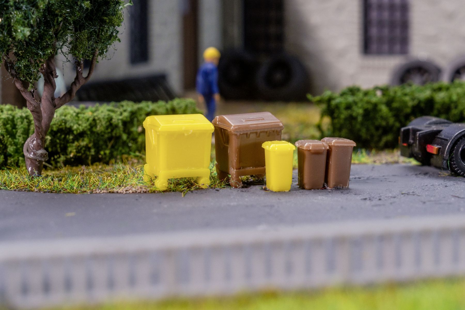 Das Mülltonnen-Set mit brauner und gelber Tonne bietet eine praktische Lösung für die Mülltrennung