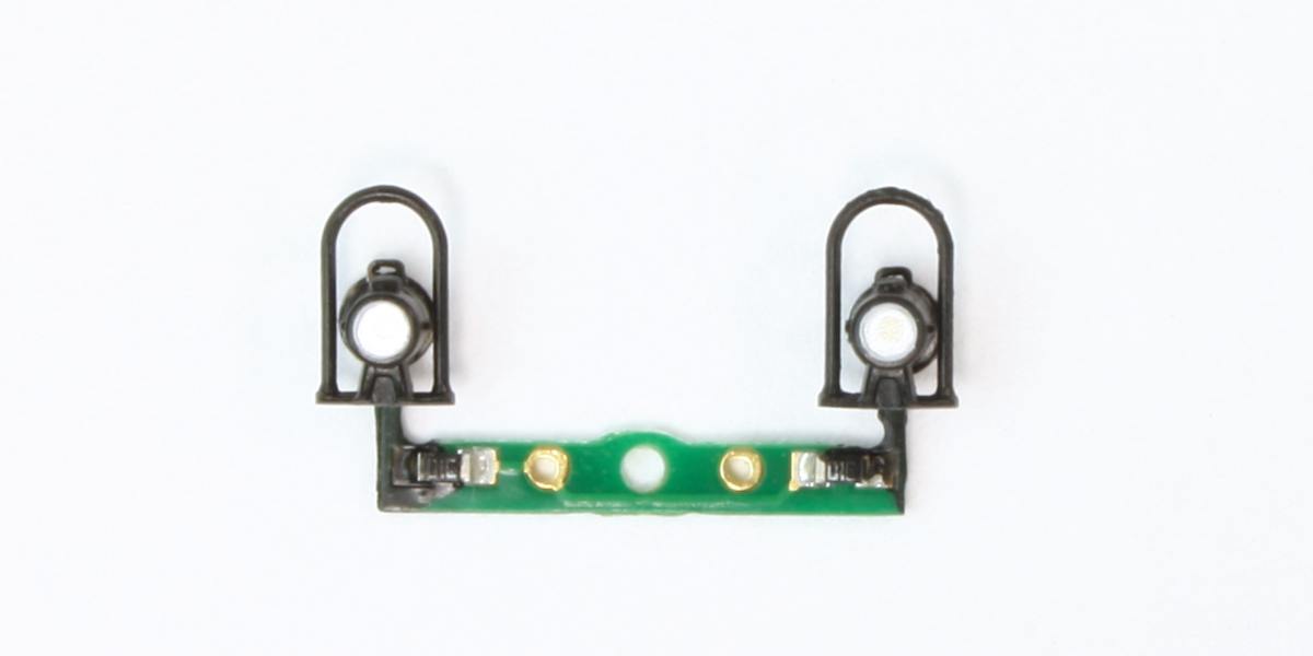 Komplett einbaufertig bestückt mit zwei warmweißen LED auf Leiterplatte zum einfachen montieren. Die detailierten Lampenkörper wurden zur Nachbildung eines Reflektors auf der Innenseite mit hochdeckender weißer Farbe ausgelegt, sodass sich mit der davor eingesetzten Kunststoffscheibe ein absolut vorbildgetreues Leuchtbild ergibt. Es ist kein zusätzlicher Vorwiderstand erforderlich.