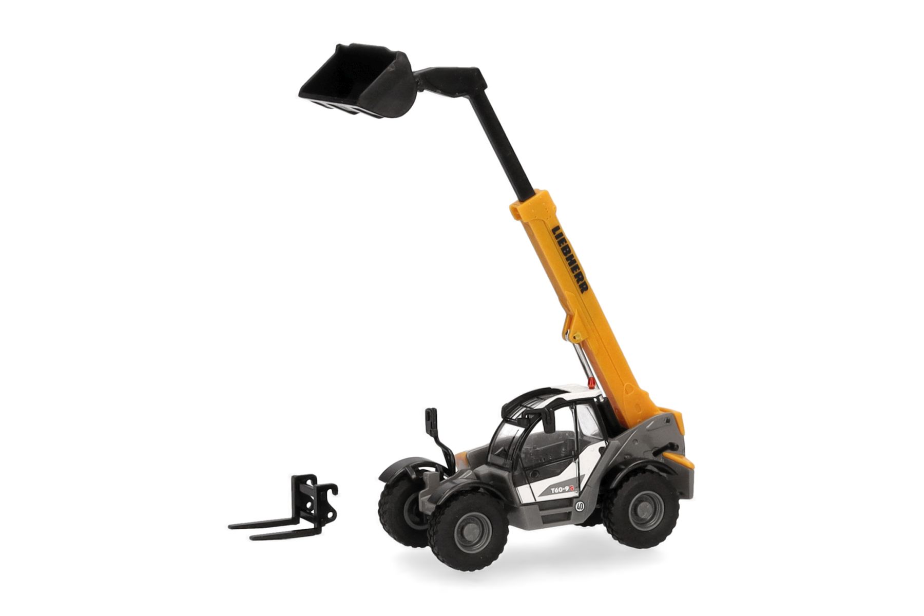 FORMNEUHEIT! Wohl die größte Überraschung auf der Spielwarenmesse 2024 in Nürnberg waren am Herpa-Stand die ersten Handmuster des Liebherr Teleskopladers T60-9S. Ob Recycling, Holzindustrie oder Container-Umschlag: Wenn es gilt, Lagerflächen perfekt zu nutzen, spielt der Liebherr-Teleskoplader seine Stärken als leistungsstarke Universalmaschine aus. Neben der Schaufel wird dem Modell direkt auch eine Palettengabel beigelegt.