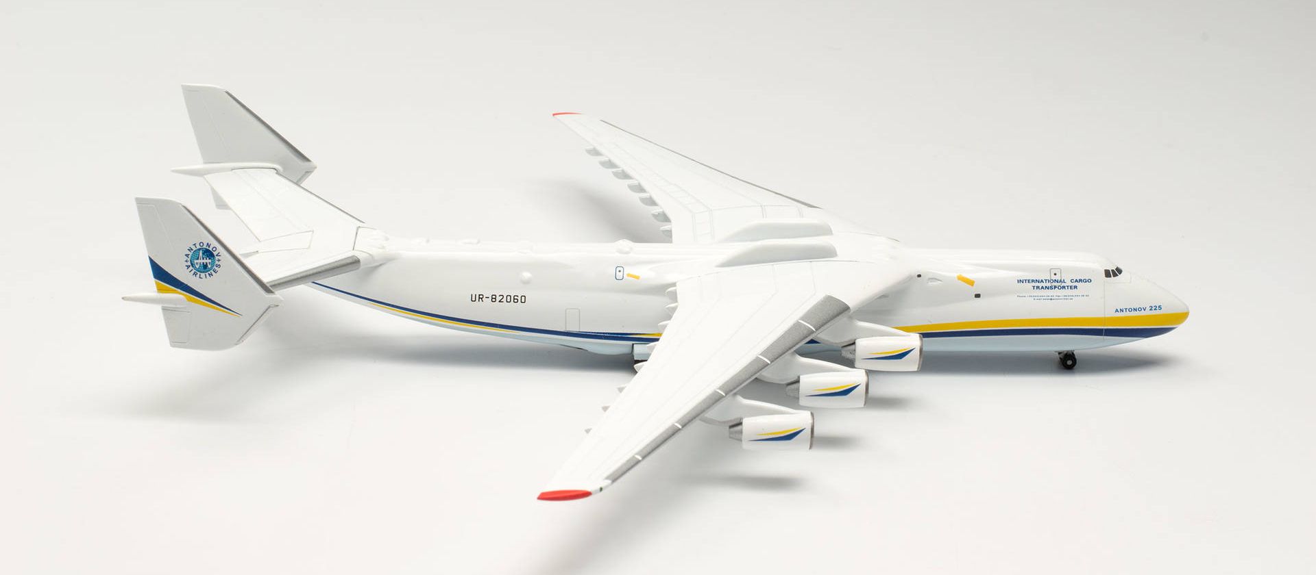 Ursprünglich für den Transport der Raumfähre Buran konzipiert, flog die einzige flugfähige „Mriya“ („Traum") in neuer, den ukrainischen Landes-Farben angepassten Bemalung überwiegend zivile Fracht.