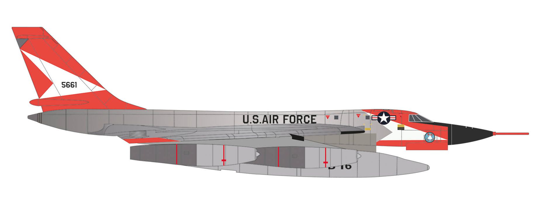 Bis heute hat die schnittige Convair B-58 Hustler mit ihren Deltaflügeln und der Wespentaille nichts von ihrer Faszination verloren. 55-0661 war der zweite Prototyp des strategischen Mach 2-Bombers von Convair und startete am 16. Februar 1957 zu seinem Jungfernflug. Mit dem Spitznamen "Mach-in-Boid" wurde das Flugzeug ausgiebig für Tests und Evaluierungen eingesetzt und war unter anderem die erste "Hustler", die Flugbetankungstests durchführte, einzigartige Treibstofftank-/Waffengondel erprobte oder den Notausstieg im Überschallflug mit Hilfe einer Rettungskapsel testete.