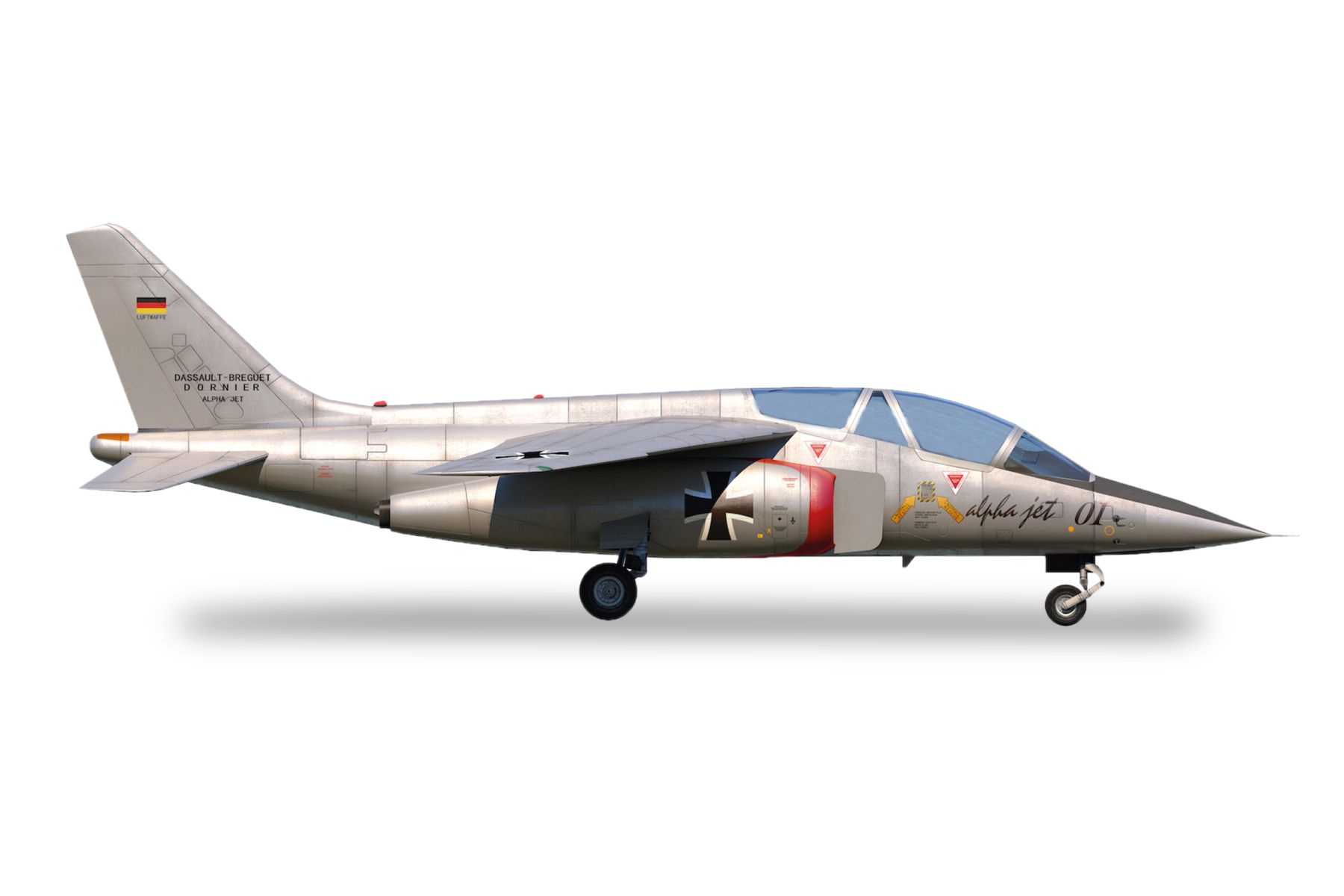 Vor gut 50 Jahren, am 26.10.1973, startete der Alpha Jet zu seinem Erstflug. Der in deutsch-französischer Kooperation von den Firmen Dassault-Breguet und Dornier entwickelte Zweistrahler zeichnete sich durch eine hohe Zuverlässigkeit, hervorragende Flugeigenschaft und eine Wendigkeit aus, die noch heute bei Air Shows Begeisterung auslöst. Ob als Schulflugzeug, wie er beispielsweise in Frankreich und Belgien jahrzehntelang Verwendung fand, oder als leichter Jagdbomber, bei der er gleich in drei Geschwadern der deutschen Luftwaffe ab 1979 zum Einsatz kam – beide Aufgaben vereinte der Alpha Jet in einem kompakten Format. Als Neuheit erscheint zunächst der erste Prototyp, der ab 1973 umfangreiche Tests absolvierte, in seiner außergewöhnlichen Bemalung mit den Hoheitsabzeichen beider Partnerländer. Heute ist dieses Flugzeug im Dornier Museum in Friedrichshafen am Bodensee erhalten und ausgestellt.