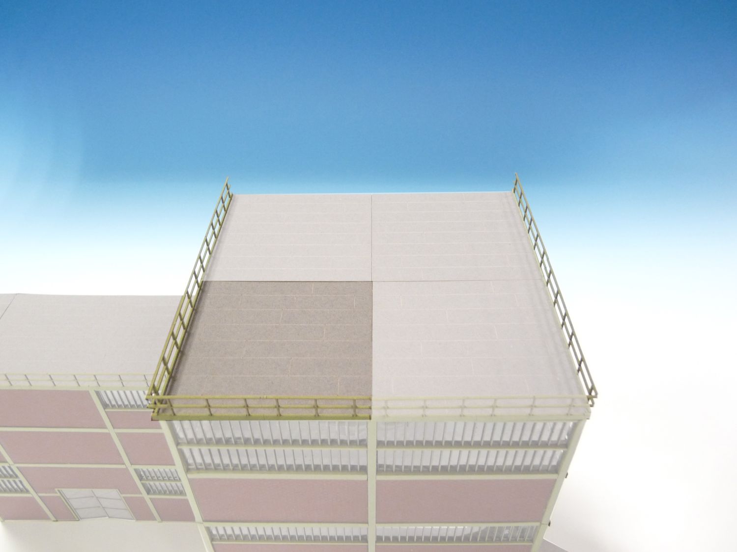 Das Bauhaus-Baukastensystem 14 verschiedene Elemente die variabel miteinander kombiniert werden können. Ein Rastermaß: 37,5 mm lang/breit und 37,5 mm hoch, beziehungsweise ein mehrfaches davon. Zahlreiche weitere Bausätze aus unserem Programm sind auf dieses Raster abgestimmt, wie zum Beispiel das Bandbrückensystem, die Treppe mit Absatz 40056, die Rohrbrücken 40009,40010,40011 und die große Rohrbrücke 17129. Die Fassadenelemente eignen sich für Hintergrundgebäude im Relief oder auch als Vollgebäude. Es gibt ein Set mit Zwischendecken und eines mit Dachplatten. Zwei weitere Sets beinhalten Stützen um Gebäudeteile mit dem Zug zu unterfahren. Wir arbeiten derzeit an einer Planungshilfe, wegen der doch umfangreichen Möglichkeiten