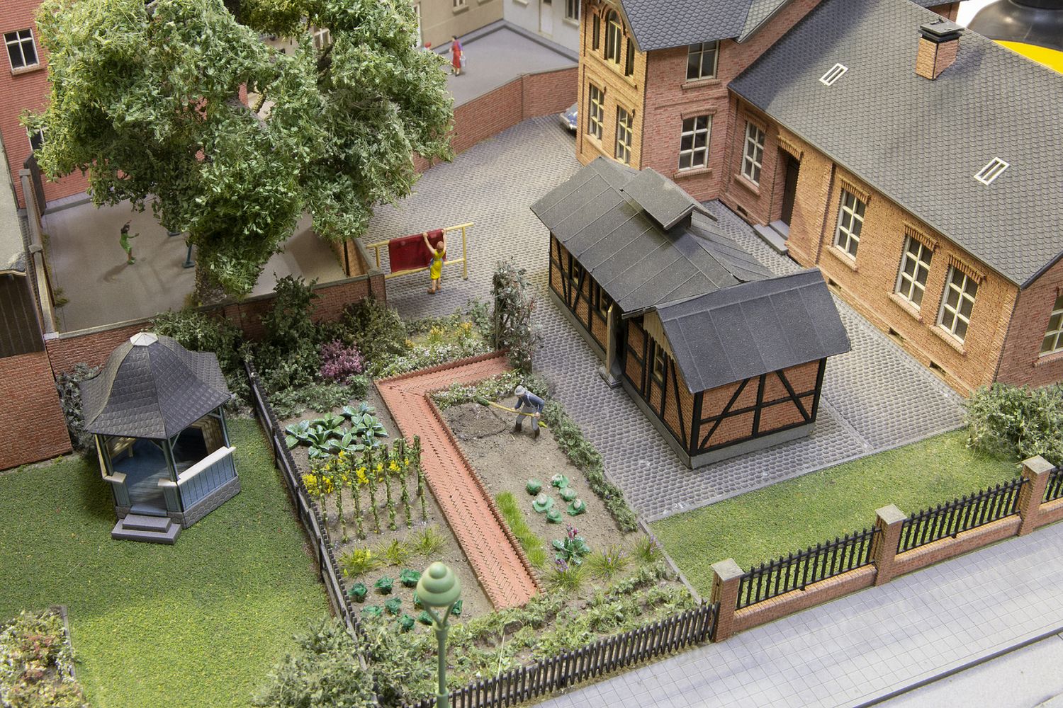 Streifen mit schräggestellten Ziegelsteinen,als Beeteinfassung oder Weg nutzbar, 12 komplette Streifen a 55 x 3 mm, 8 halbe Streifen als Randstein a 27 x 2 mm.