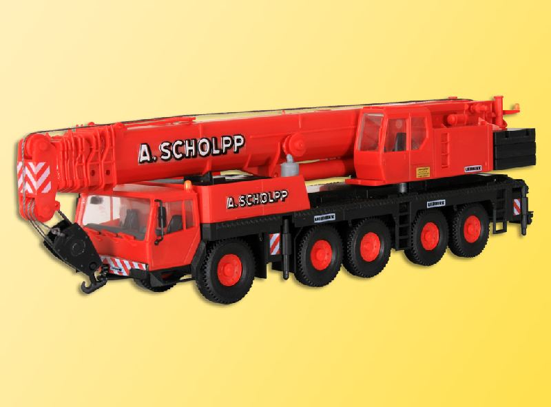 Bausatz. Vorbilddaten: 5-achsig, max. Traglast 160 t, max. Hubhöhe mit Klappspitze 96 m, max. Ausladung mit Klappspitze 74 m. Dieser Autokran zeichnet sich durch eine Anzahl von Leistungsprofilen aus, die das Gerät zum Marktführer seiner Leistungsklasse machen. Das Fahrzeug wird von einem 400 kW/554 PS starken LIEBHERR Turbodiesel angetrieben. Dadurch wurde der Kran kompakt, wendig und gewichtsoptimiert. Herausragend ist der 6-teilige Teleskopausleger. Das ovale Auslegerprofil ist besonders formsteif und deshalb äußerst stabil. Der Ausleger ist 5-fach teleskopierbar, weshalb ohne Anbauten eine Rollenhöhe von 60 m erreicht wird.