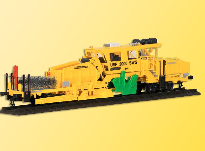 Bausatz. Vorbilddaten: LüP 19 m, Drehzapfenabstand 11,5 m, Gesamtmasse 55 t, Motorleistung ca. 400 kW, max. Fahrgeschwindigkeit 100 km/h. Maschine mit 2 2-achsigen Drehgestellen für Gleise und Weichen mit Schottersilo, ausgestattet mit einem geteilten Mittelpflug. Geeignet zum Pflügen in Gleisen mit Linienleiter, wobei der Schotterfluss über einen Symboltaster genau dosiert werden kann. Der Flankenpflug bringt den Schotter aus dem Bereich der Bettungsflanke zur Bettungskrone. Kehrvorrichtung mit reversiblem Querförderband zur Ablagerung des überschüssigen Schotters an einer Bettungsflanke. Steilförderband, Schottersilo mit Bodenförderband und Verteileinrichtungen dienen zur Speicherung und Wiedereinbringung von Schottermaterial. Hydrostatischer Fahrantrieb auf allen Achsen, UIC-Bremsen, Großraumkabine mit Führerständen und Frontscheiben aus Sicherheitsglas. Der richtig definierte Bettungsquerschnitt ist vor allem für die Sicherung der Gleislage gegen Verwerfungen wichtig. Die richtige Verteilung des Schotters im Gleis sowie die Rückgewinnung von der Flanke ist ein Faktor höchster Wirtschaftlichkeit. Die Bearbeitung der Bettungsoberfläche, insbesondere an den Flanken, wirkt sich auch günstig gegen Pflanzenbewuchs im Bettungsbereich aus. Dabei handelt es sich in erster Linie um eine rein mechanische Beeinflussung der Schotteroberfläche. Auf Schnellfahrstrecken ist die Bearbeitung der Schwellenoberflächen und der Zwischenfächer durch gründliches Abkehren wichtig, um das Aufwirbeln von Schottersteinen aufgrund der hohen Geschwindigkeiten zu verhindern. Mit NEM-Schacht.
