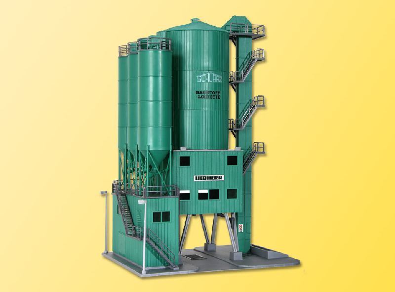 Bausatz. Betonmischtürme von LIEBHERR sind Hochleistungszentralen für eine wirtschaftlich produzierte Qualität von Beton oder Mörtel. Das bewährte Baukastensystem gestattet ganz individuelle Lösungen wenn es darum geht, die Anlage verschiedenen Bedürfnissen anzupassen. Die LIEBHERR-Betonzentralen Betomat werden in der ganzen Welt eingesetzt , wie z. B. in Transportbetonanlagen, Fertigteilwerken, in der Betonproduktion, auf Großbaustellen und auch bei Staudammbauten. Sie sind konzipiert für Ausstoßleistungen von 55 – 180 m³/h Festbeton. Als Tandemanlage erhöht sich die Leistung auf das Doppelte. Die Firma SchwarzBau ist im kibri Sortiment stark vertreten. Mit dem Betonwerk, der Dieseltankstelle Art. 39932, dem Doppelsilo Art. 39931 und einer großen Auswahl an Baumaschinen in den typischen SchwarzBau Farben können Betriebshof und Baustellen nach Belieben gestaltet werden. Durchfahrtshöhe: 5,0 cm. Durchfahrtsbreite: 4,0 cm.