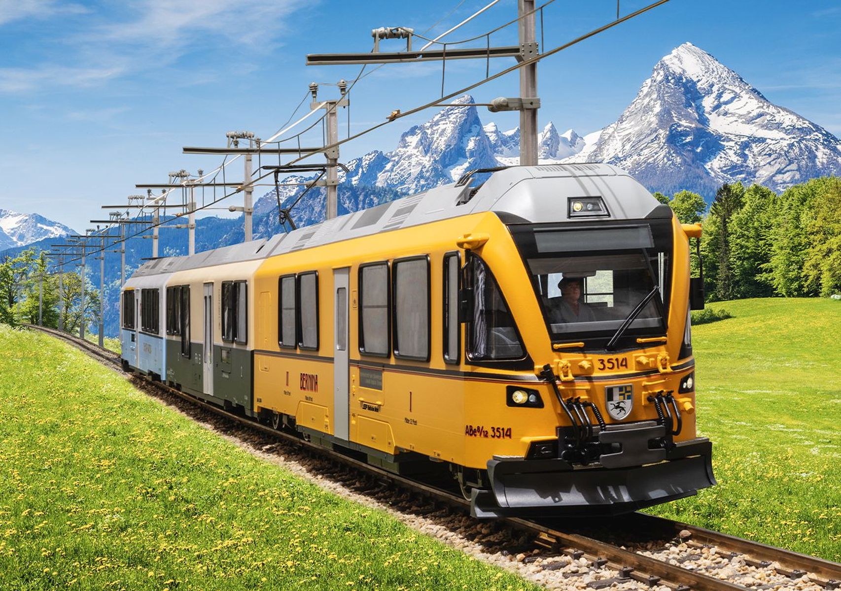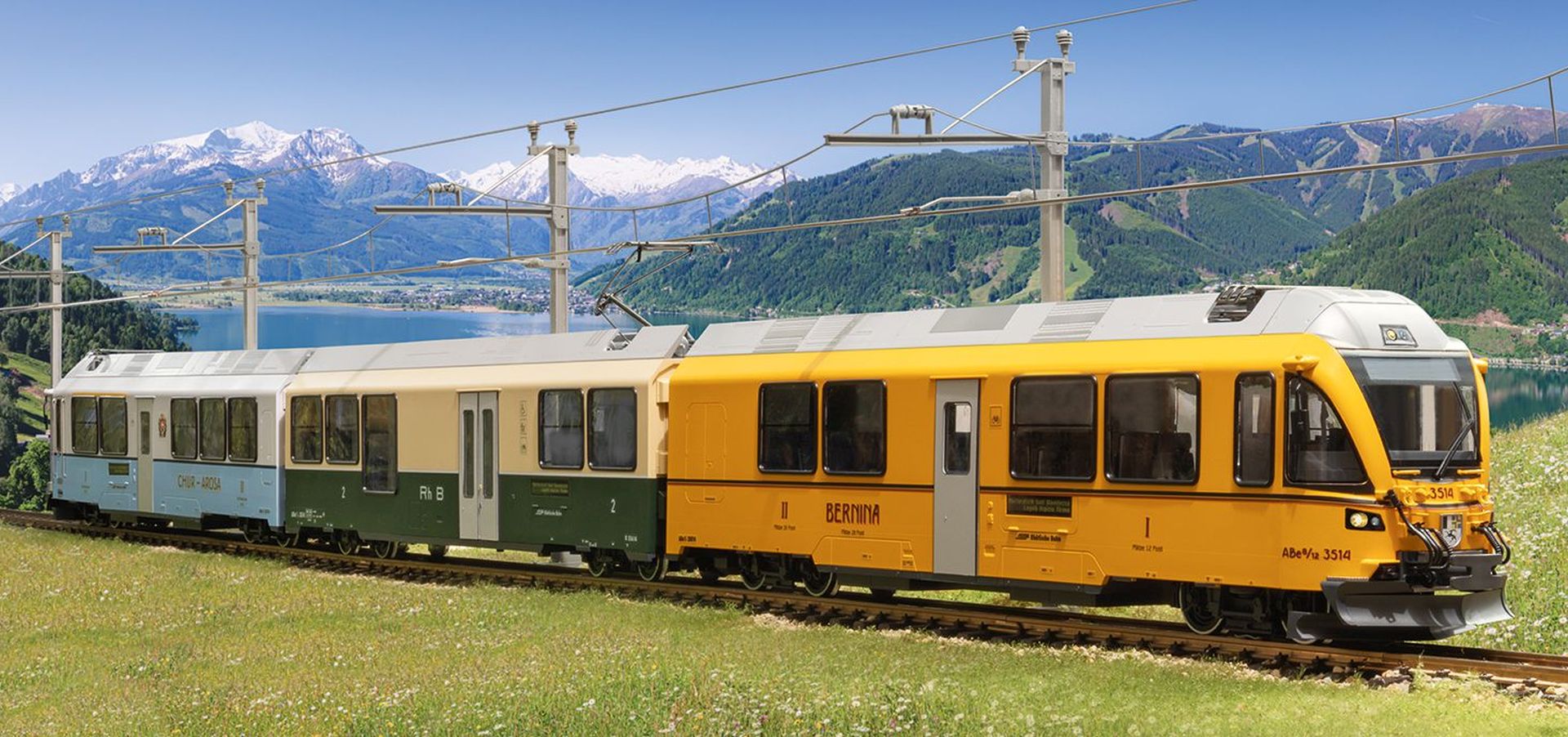 Das Netz der Rhätischen Bahn (RhB) bietet mit einer Streckenlänge von insgesamt 384 km jede Menge spektakuläre Momente. Während die Albula- und Berninabahn, die beide seit 2008 zum Welterbe der Unesco zählen, überaus bekannt sind, ist die Arosalinie eher noch ein Geheimtipp. Sie wurde 1914 von der Aktiengesellschaft Chur-Arosa-Bahn gebaut und fusionierte erst 1942 mit der RhB. Bis dahin waren die nach Arosa fahrenden Züge im hellblauen/hellgrauen Anstrich unterwegs. Nach der Fusion erhielten sie das damals gängige RhB-Farbschema Grün/Beige, ehe sie später in ein leuchtendes Rot gewandelt wurden. Dieses Farbkleid tragen sie heute noch.Auch die Berninabahn war bis ins Jahr 1943 eigenständig. Die Gesamtstrecke St. Moritz – Tirano wurde 1910 fertiggestellt. Die Fahrzeuge erhielten damals ein fesches gelbes Design. Seit 2009 sind die Allegra-Zweispannungstriebzüge im Netz der RhB unterwegs, und dies vorwiegend auf der Arosalinie und am Bernina. Als nun beim Allegra ABe 8/14 3514 eine Revision anstand, entschied man sich, das Fahrzeug in Erinnerung an die einst selbstständigen Bahnen in deren historischen Farben zu lackieren. Der Mittelwagen erhielt das historische RhB-Farbschema. Seit Dezember 2023 zeigt sich der Triebzug also nicht mehr im vertrauten RhB-Rot, sondern wunderbar bunt. So entstand der „Ahnenzug“, wie die RhB den 3514 liebevoll nennt. Er ist nicht nur ein Blickfang, sondern auch eine Hommage an die einst selbstständigen Bahnen im Kanton Graubünden.