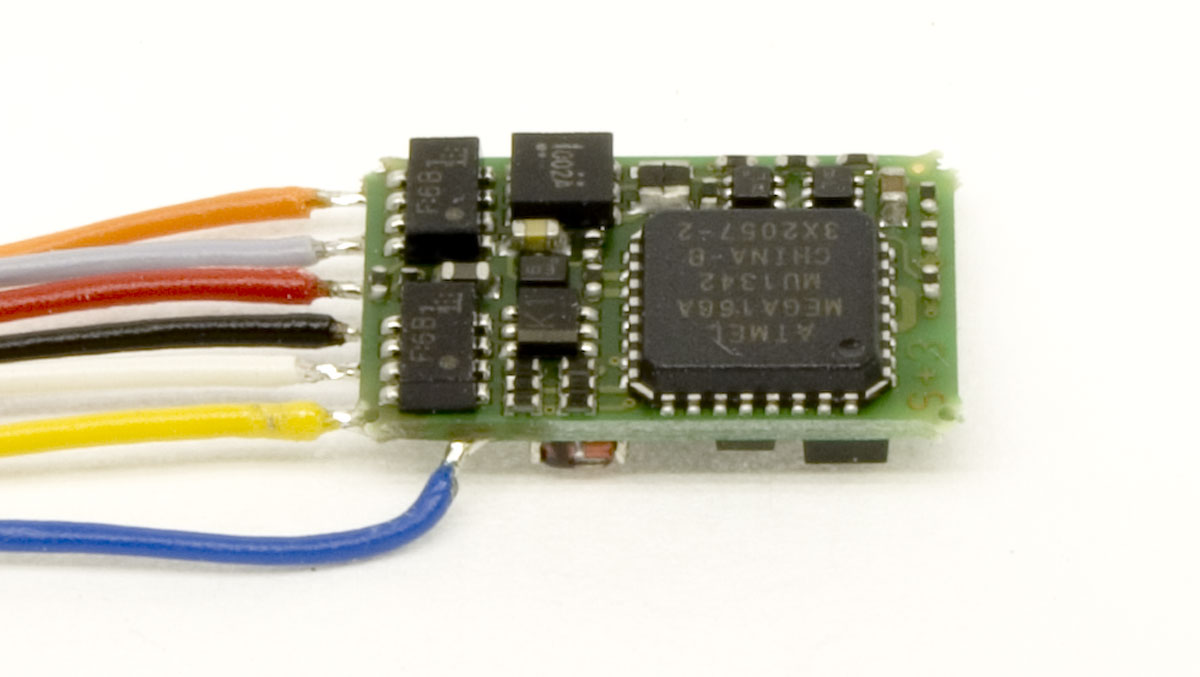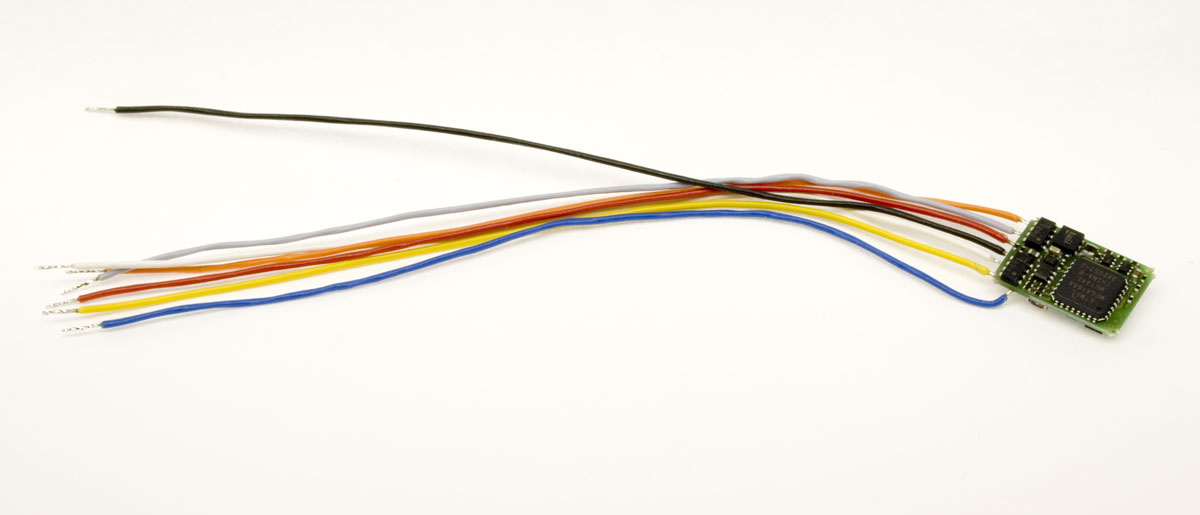 Lokdecoder "SILVERmini+" Dauerbelastbarkeit 500 mA, mit Kabel, 2 Funktionsausgänge, ABC, Railcom, S.U.S.I.-Schnittstelle, Abmessungen: 10,6 x 7,5 x 2,6 mm