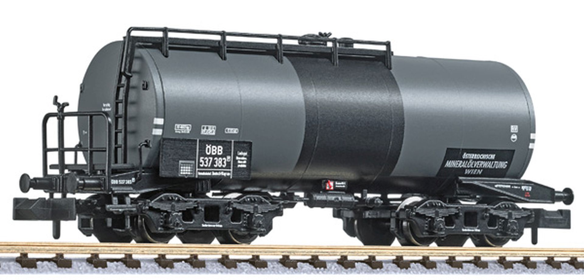 4-achsiger Kesselwagen, „Österreichische Mineralölverwaltung Wien“, Deutzer Bauart, Betriebs-Nummer: 537 383 , eingestellt bei der ÖBB, Betriebszustand ca. 1962