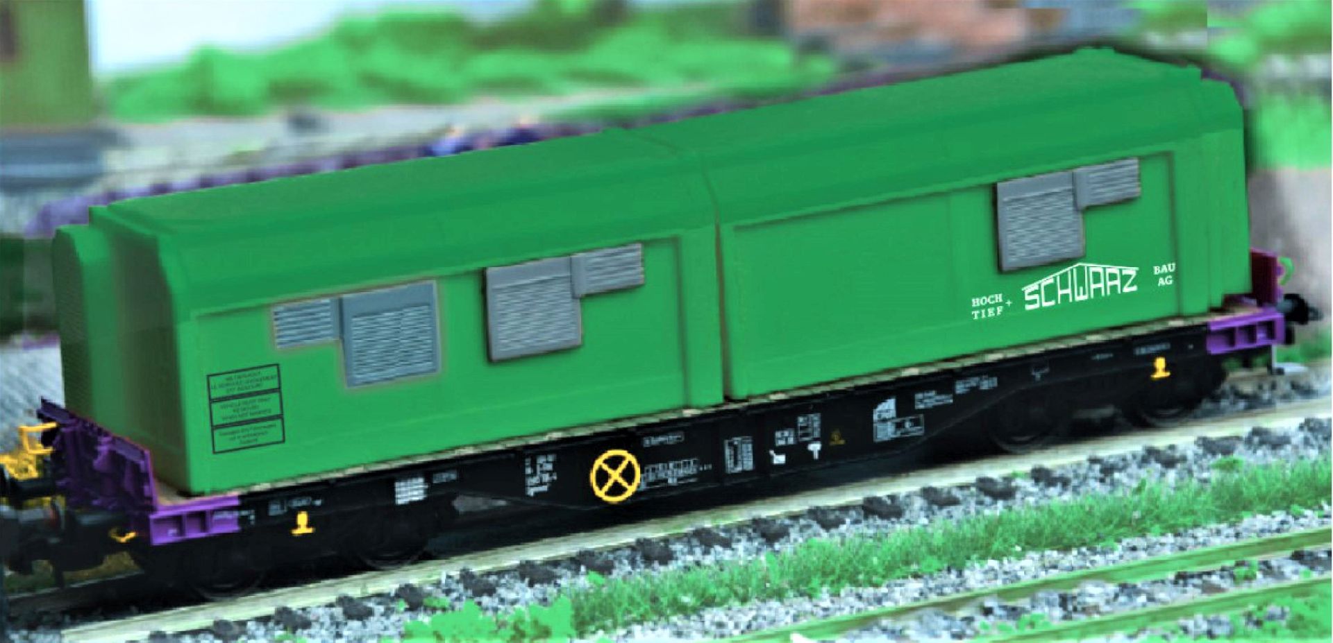Set A, bestehend aus zwei mobilen Wohneinheiten (Wohn- und Aufenthaltsmodul) mit unterschiedlicher Fensterzahl; Länge: 2 x ca. 70 mm
