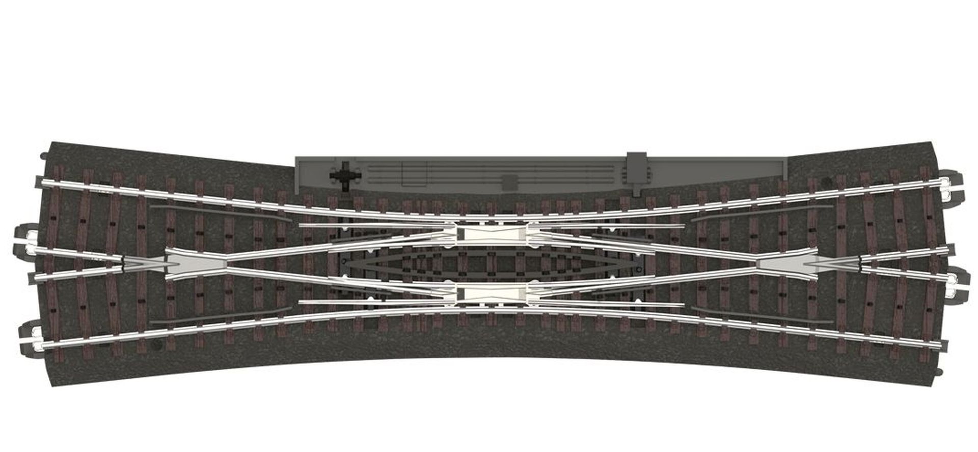 An den Enden der Doppelkreuzungsweiche werden 4 Gleise 24071 benötigt (nicht in 24720 enthalten). 2 passende Böschungskeile liegen bei.