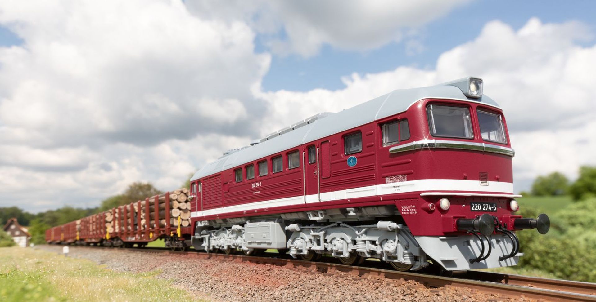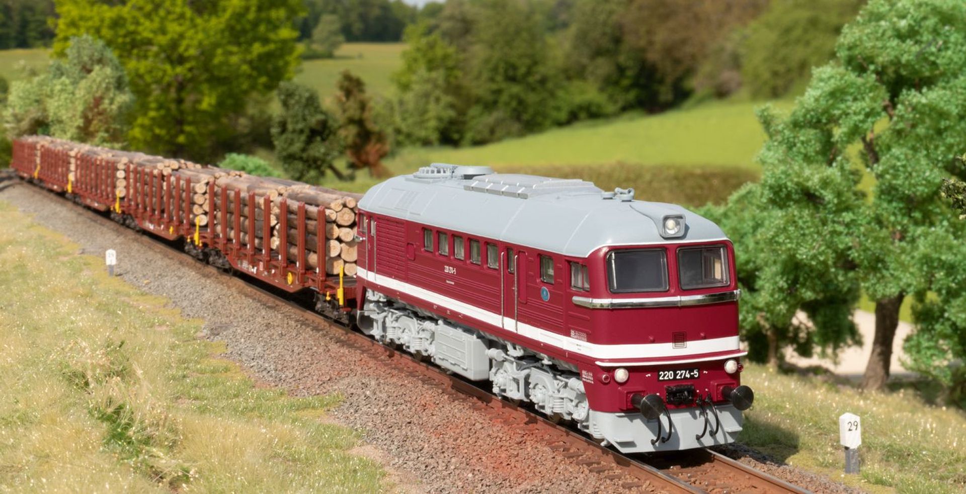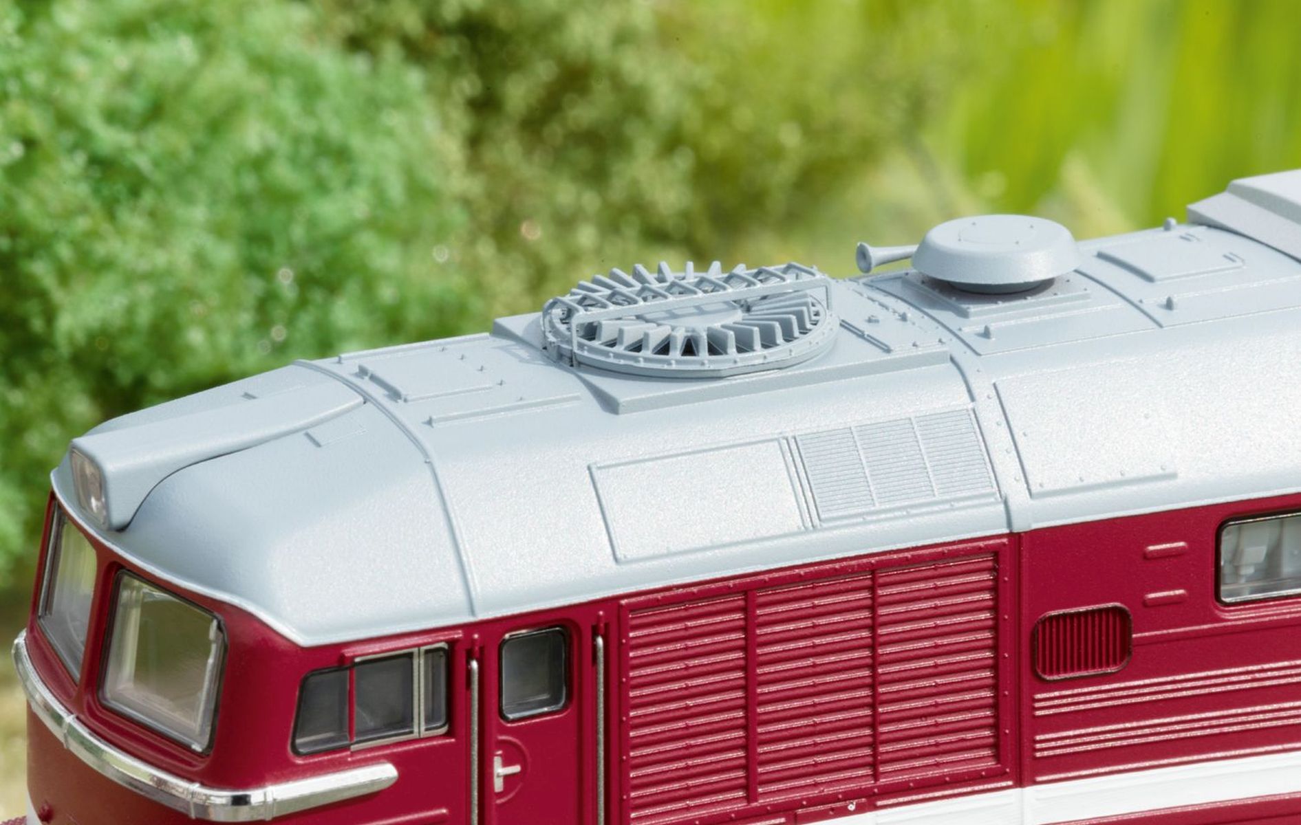 Vorbild: Diesellokomotive BR 220 der Deutschen Bahn AG (DB AG), auch bekannt unter dem Spitznamen „Taigatrommel“. Mit Schalldämpfer sowjetischer Bauart, Ansauggitter mit senkrechten Lamellen und Kühlerlüfter mit Flatterlamellen. Betriebszustand 1994. Betriebsnummer 220 274.