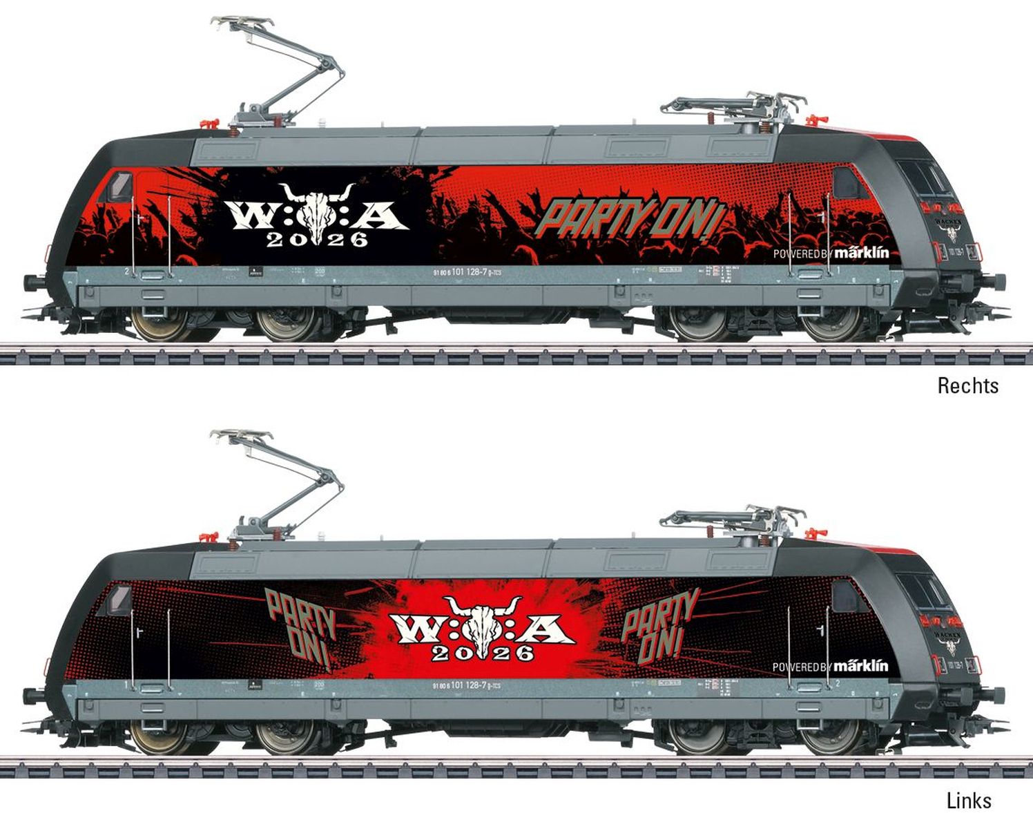 Vorbild: Schnellzuglokomotive Baureihe 101 mit einer Sondergestaltung zum Wacken Open Air (W:O:A®). Betriebszustand 2026.