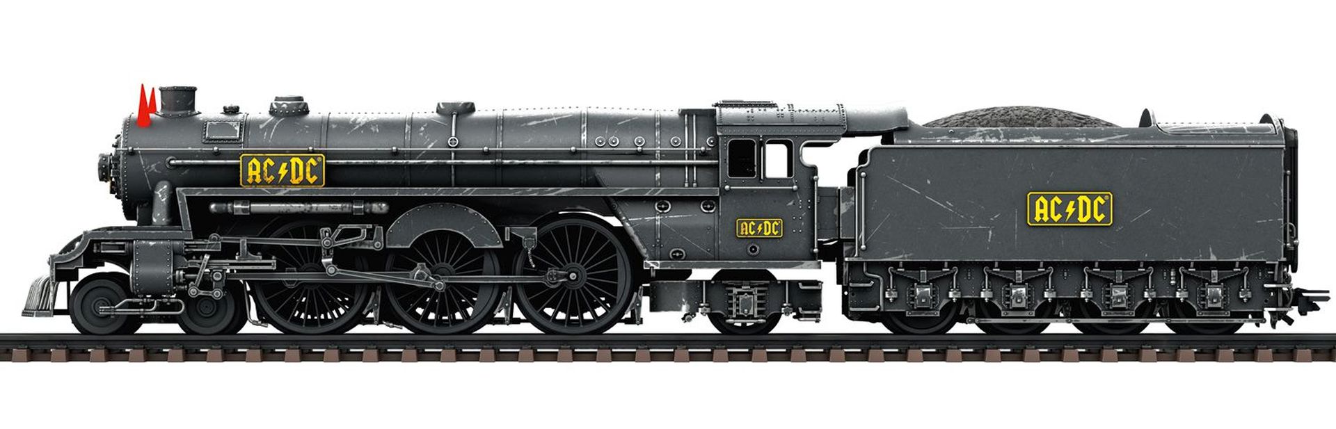 Genau diese treibende Energie verbindet AC/DC und Märklin! Märklin präsentiert die beeindruckende und ikonische Bühnenlok als voll funktionsfähiges Sammlerstück. Selbstverständlich mit den ikonischen Hörnern und, ganz im Geiste von AC/DC, aus heavy metal. For those about to play – we salute you!