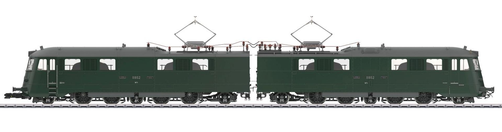 Vorbild: Elektrolokomotive Serie Ae 8/14 Nr. 11852 "Landi-Lok" der Schweizerischen Bundesbahnen (SBB) in tannengrüner Grundfarbgebung der Epoche IV, Betriebszustand um 1970.