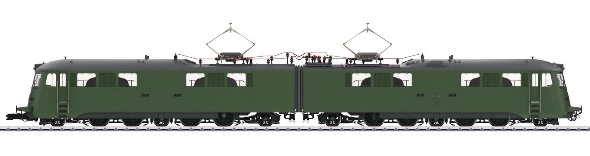 Vorbild: Elektrolokomotive Serie Ae 8/14 Nr. 11852 "Landi-Lok" der Schweizerischen Bundesbahnen (SBB) in resedagrüner Grundfarbgebung ihres Auslieferungszustandes im Jahre 1939, Epoche II, anlässlich der in Zürich veranstalteten Schweizerischen Landesausstellung, genannt "Landi 39". Deshalb trägt diese Lok der Serie Ae 8/14 auch den Kosenamen "Landi-Lok".