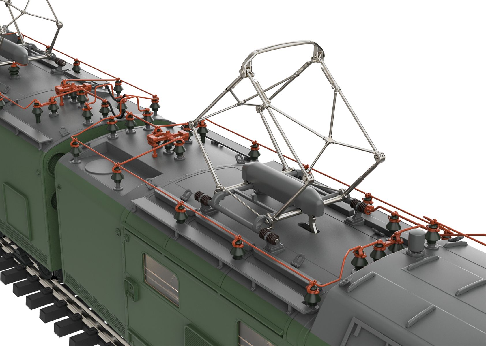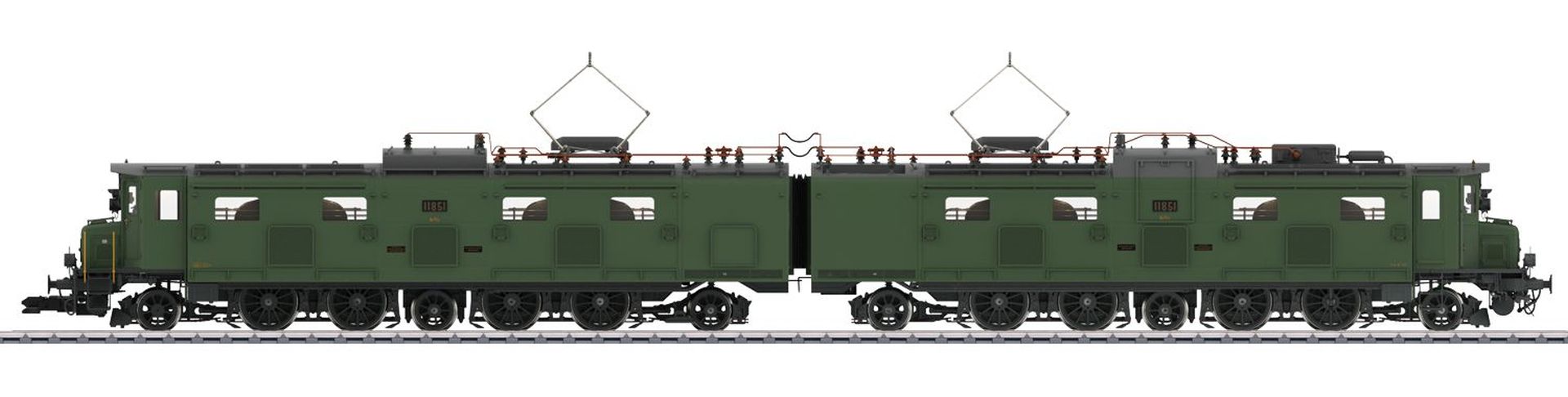Modell: Komplett neukonstruiertes, höchstdetailliertes High-Class Vollmetall-Profimodell. Fahrgestell mit Hauptrahmen aus Zinkdruck- und Messingguss, Lokaufbau aus Messingblech. Ansetzteile aus Messing-Schleuderguss. Mit mfx Digital-Decoder und 32 Funktionen, Stromspeicher parametrisierbar. Umfangreiche Licht- und Soundfunktionen. Für ein qualitativ höchstwertiges Sounderlebnis sorgt je Lokteil ein Markenlautsprecher in HiFi-Qualität. Betrieb mit Wechselstrom, Gleichstrom, Märklin Digital und DCC möglich. Je Lokteil ein zentral eingebauter und eigens für dieses Modell konstruierter Bühler-Hochleistungsmotor mit Antrieb auf alle Achsen! Im Digitalbetrieb motorisch heb- und senkbare, vorbildgerechte Scherenstromabnehmer. Weißes 3-Licht-Spitzensignal mit LEDs im Wechsel mit weißem schweizerischen Schlusslicht, digital schaltbar. Ebenso separat digital schaltbar ist das schweizer Falschfahrsignal. Warmweiße LED-Beleuchtung im Führerstand und im Maschinenraum/-gang, ebenso sind die Fahrpulte in den Führerständen beleuchtet. Führerstandstüren zum Öffnen. Aufwendige, höchstdetaillierte Nachbildung der Inneneinrichtung von Führerstand und Maschinenraum, Führerstand mit eingebauter Lokführerfigur. Griffstangen aus Metall und viele weitere angesetzte Details wie: Schilder, Scheibenwischer, Pfeife u.a. Pufferbohlen mit Federpuffern und angesetzten Bremsleitungen. Hinten serienmäßig montierte, fernbedienbare Telexkupplung hinten gegen beigefügte Schraubenkupplungen austauschbar. Vorne vorbildgerechte Schraubenkupplung. Telexkupplung für vorn im Lieferumfang. Mit Echtheitszertifikat und einer in Metall gegossenen Replik des Fabrikschildes vom großen Vorbild. Befahrbarer Mindestradius 1.020 mm. Länge über Puffer 106 cm. Gewicht ca. 12,2 Kg.