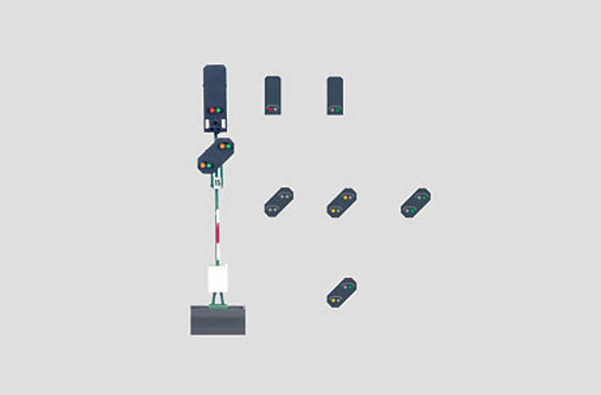 2 Signale an einem Mast ohne zusätzlichen Anschluss. Blocksignal für den Einsatz an der Strecke. Vorsignal für den Einsatz vor einem Blocksignal oder einem Einfahrsignal.