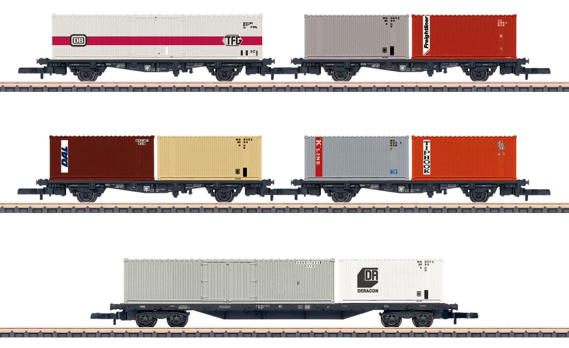 4-achsiger Tragwagen aus Kunststoff. Alle Container mit individueller Nummer fein bedruckt, abnehmbar und stapelbar.