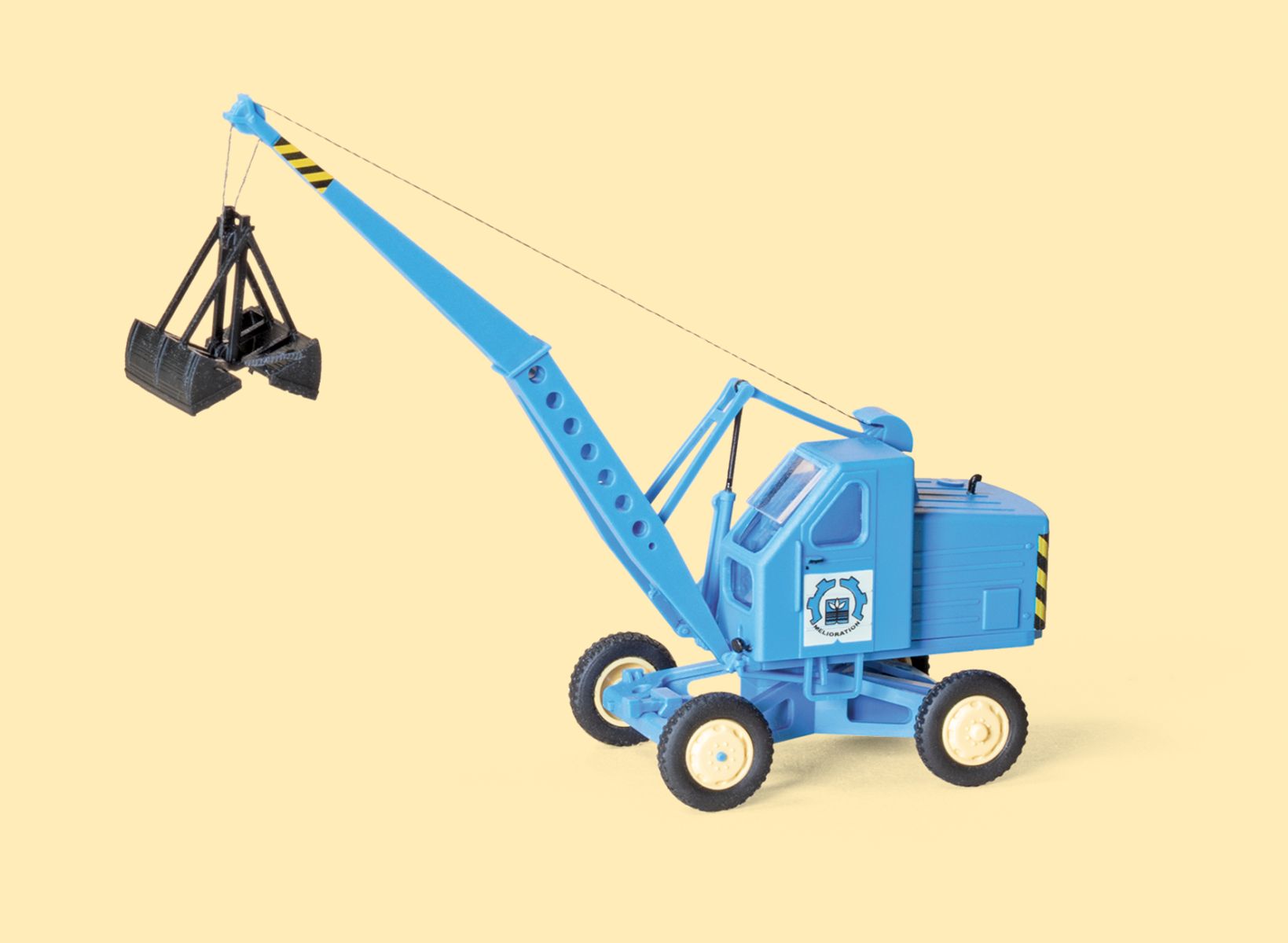 Der filigrane, aufwendig bedruckte Bausatz gibt das Vorbild eines T 172 der Melioration wieder. Durch den um 360° drehbaren Aufbau sowie den in der Neigung variablen Ausleger, welcher wahlweise mit Haken oder Schalengreifer ausgerüstet werden kann, lassen sich authentische Szenen nachgestalten. Auch eine Verladung auf Flachwagen ist möglich – eine Einfach-Bereifung für die Antriebsachse liegt…