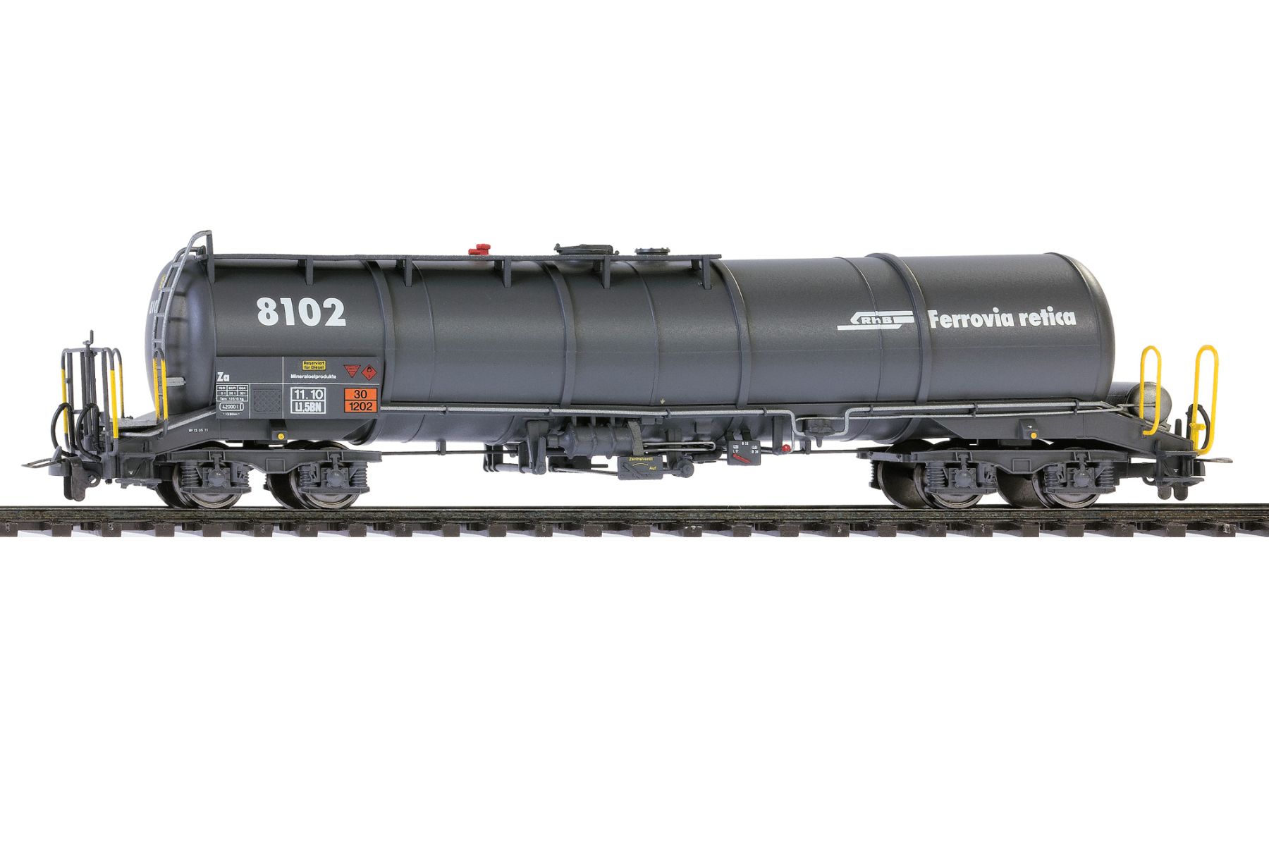 Mit der Produktion der neu lackierten MGB-Wagen nehmen wir zwei Knickkesselwagen der RhB mit neuen Betriebsnummern ins Sortiment: Za 8112 mit blattgefederten Drehgestellen, Za 8103 mit neuerer Drehgestell-Bauform. Die Modelle der Za 8109, 8111 und 8113 mit Blattfeder-Drehgestellen aus der letzten Produktion sind lieferbar solange der Vorrat reicht.