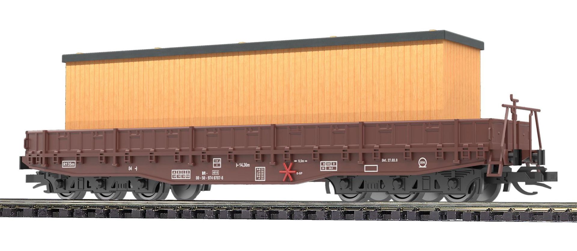 Busch 31183 - Flachwagen Samm mit Ladung Überseekiste, DR, Ep.IV