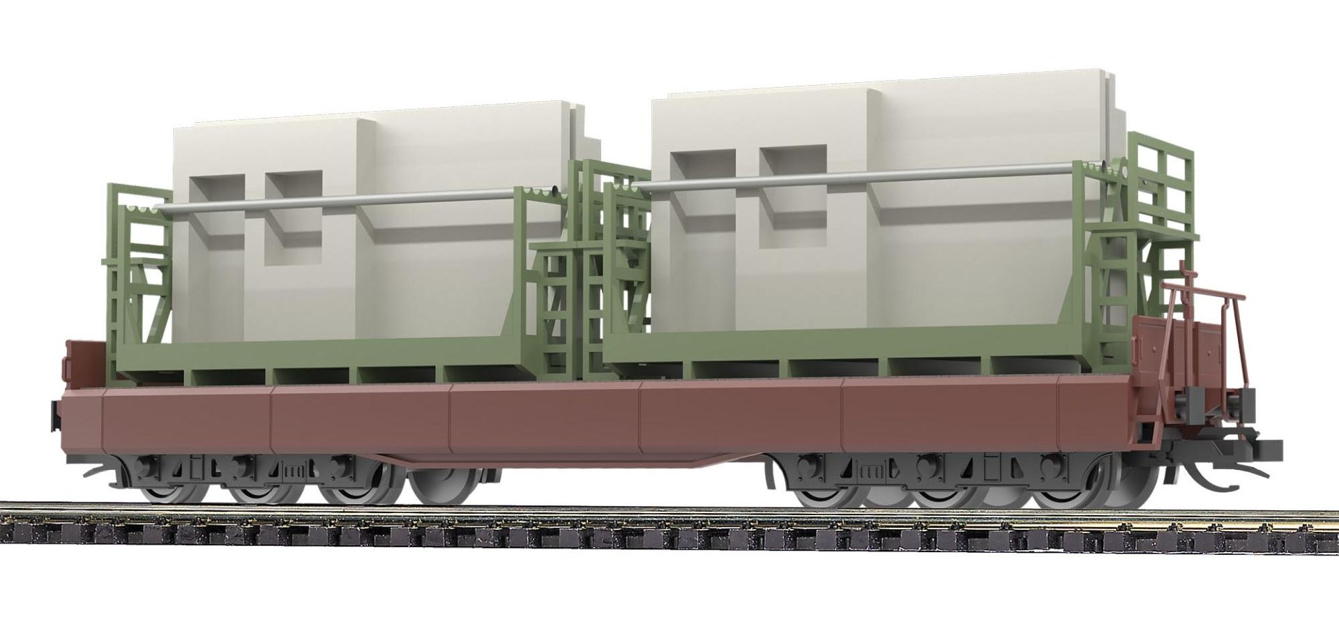 Busch 31655 - Flachwagen Samm mit Wohnungsbauplatten, DR, Ep.IV
