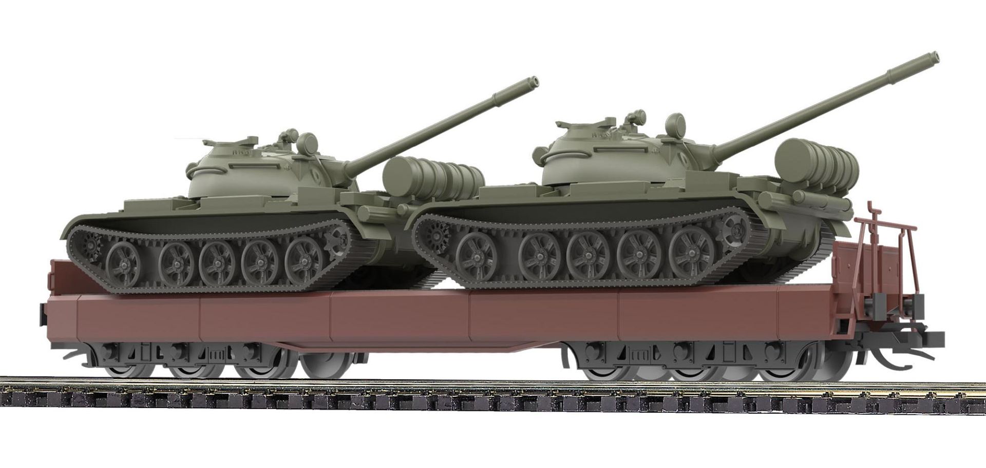 Busch 31650 - Flachwagen Samm mit 2 Panzern T-55A, DR, Ep.IV