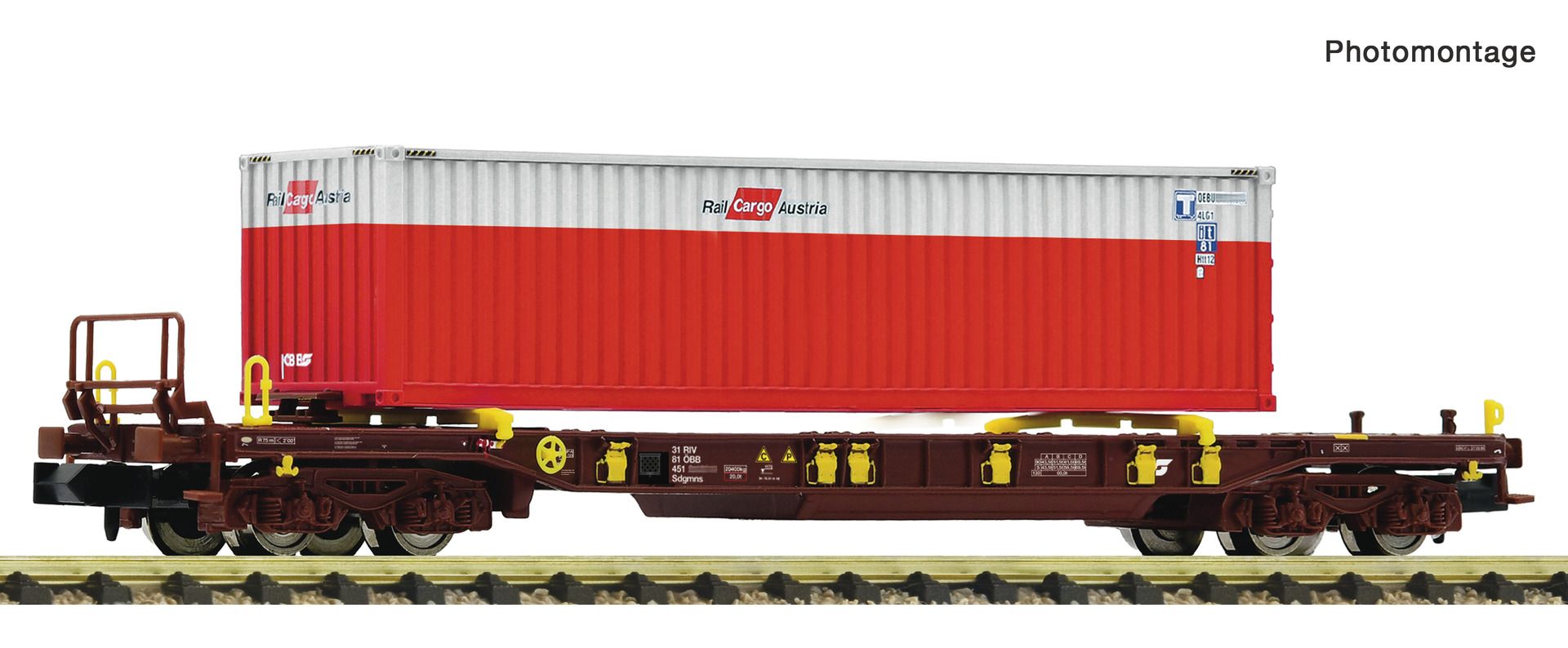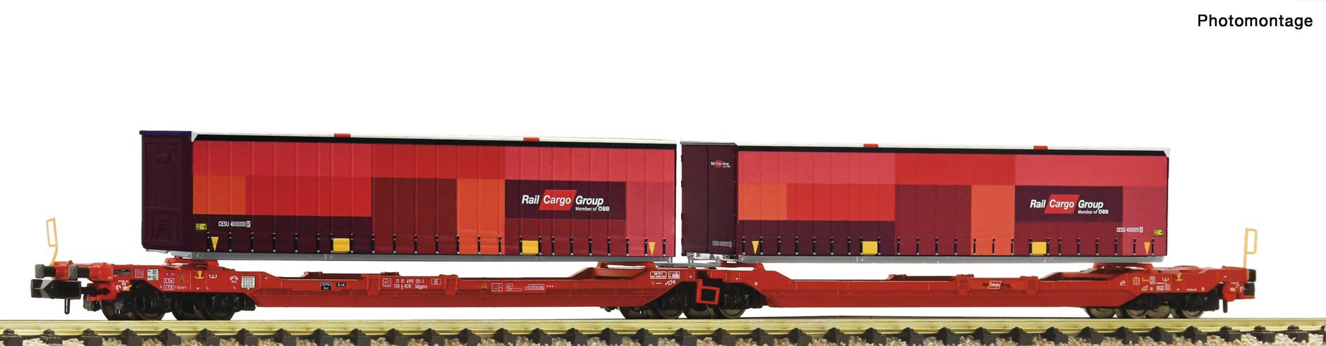 Doppeltaschen-Gelenkwagen, Gattung Sdggmrs 738/T3000e, der Österreichischen Bundesbahnen (Rail Cargo Wagon).